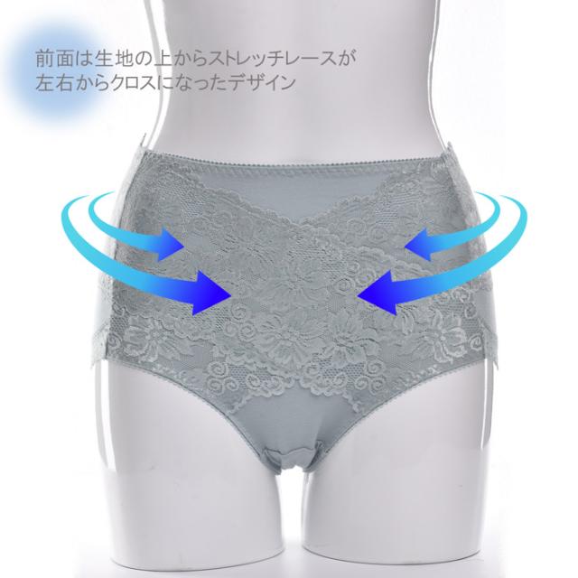 ・お腹部分は綿生地の上からクロスにストレッチレース生地が重なっており、暖かく安定感があります