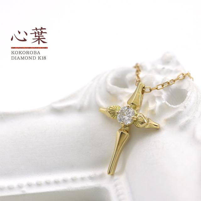 クロス ネックレス レディース 18金 イエローゴールド 天然 ダイヤモンド K18 18K ジュエリー ブランド 「 心葉 」 二葉葵 十字架 葉っぱ 植物 和風 日本 京都 アクセサリー 葵 葵祭 個性的 記念日 誕生日 ギフト 贈り物 彼女 嫁 長め 本物 ホワイトデー お返し