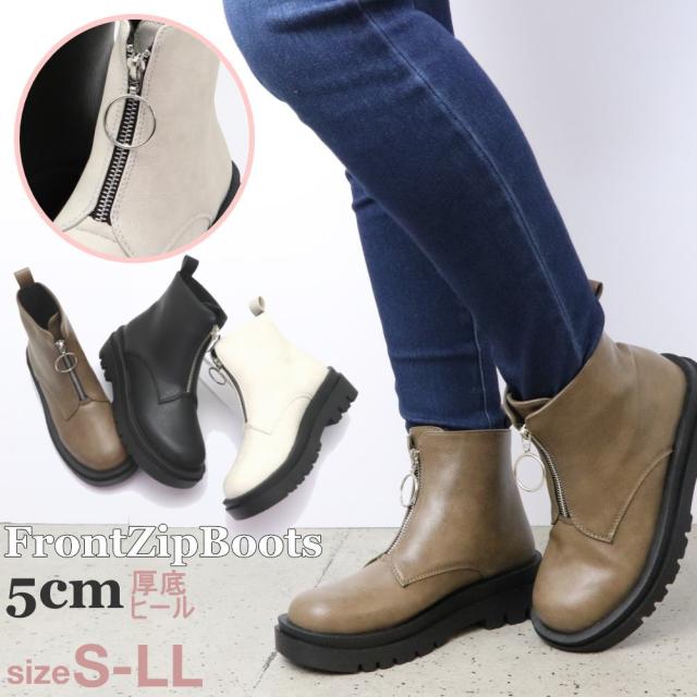 レディース 厚底 フロントファスナー センタージップ ショーツブーツ タンクソール No.5202