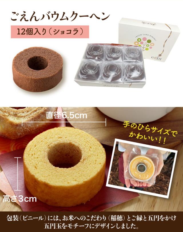 【ごえんバウム12個入 ショコラ×12】 米粉バームクーヘン グルテンフリー バウムクーヘン 送料無料 内祝い ギフト 詰め合わせ