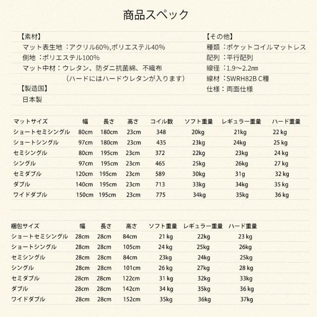シングルサイズ 日本製夜香ハイグレード2 ポケットコイルマットレス 圧縮梱包タイプベッド お子様も安心 防菌 防臭 防ダニ加工済 時間指定も可能
