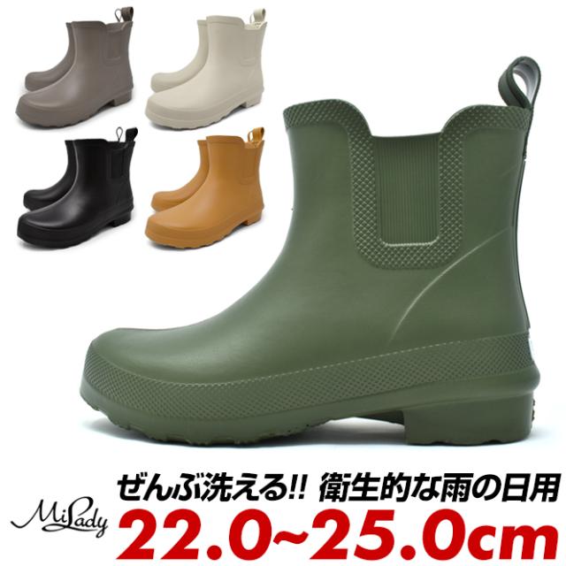 レインブーツ レディース サイドゴア風 チェルシーブーツ風 黒 緑 灰茶色 軽い 軽量 長靴 雨靴 歩きやすい 履きやすい ミレディ milady ショート ミドル ブーツ レインシューズ 雨 雪 冬新作 ポイント消化