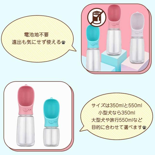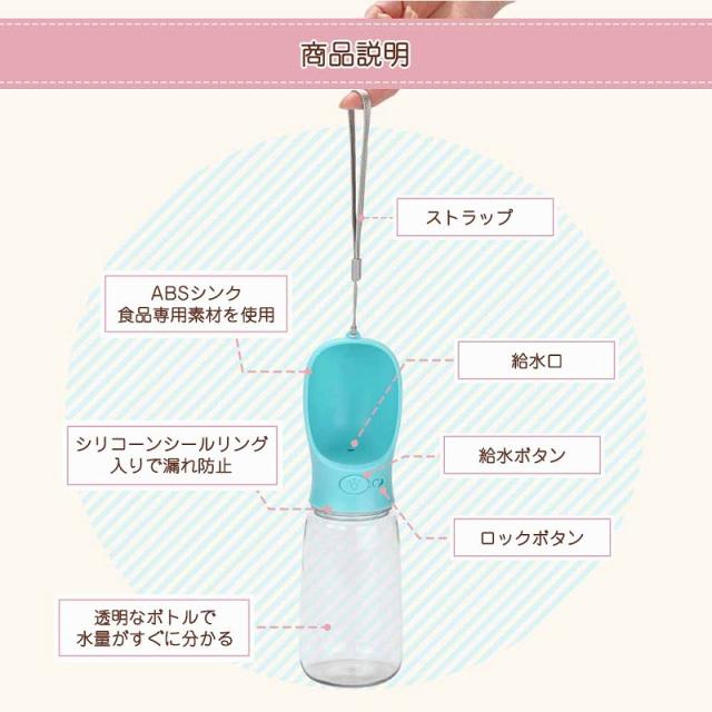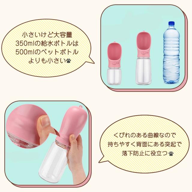 ペット給水ボトル 350ml 小 ペットウォーターボトル 犬猫 小型動物 ロック機能 ワンボタン 手軽 水分補給 犬の散歩 旅行 水飲み 給水器 ドライブ 漏れ防止 丈夫 agesugi_sfp