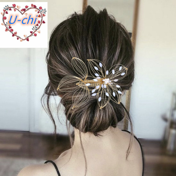 バレッタ ゴールド シルバー 小枝 華奢 ヘアアクセサリー メタル 花 ガーデンウェディング ナチュラル アンティーク ヘッドピース