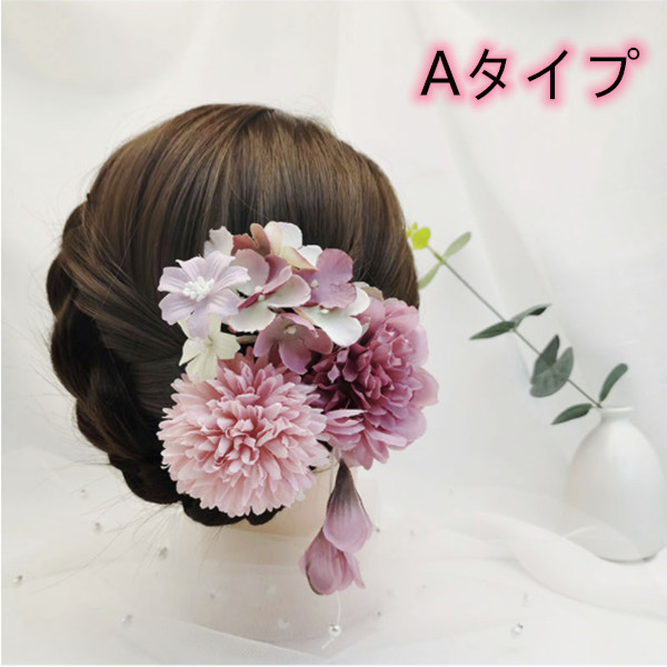 髪飾り レディース ヘッドドレス 花 ドライフラワー ヘアアクセサリー かすみ草 ダリア アジサイピック パール 花嫁 ウェディング 着物 浴衣