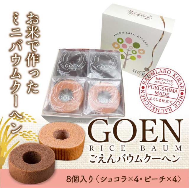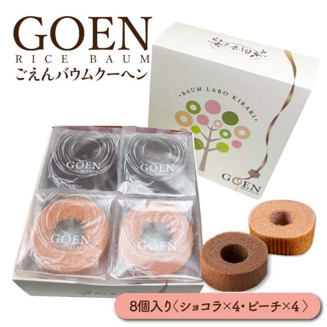 【ごえんバウム8個入 ショコラ・ピーチ各4個】 米粉バームクーヘン グルテンフリー バウムクーヘン 送料無料 内祝い ギフト 詰め合わせ
