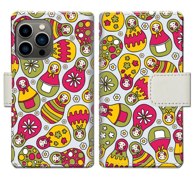 apple iPhone13Pro 手帳型 ケース カバー アイホン13プロ 手帳ケース 手帳カバー【POPマトリョーシカデザイン】