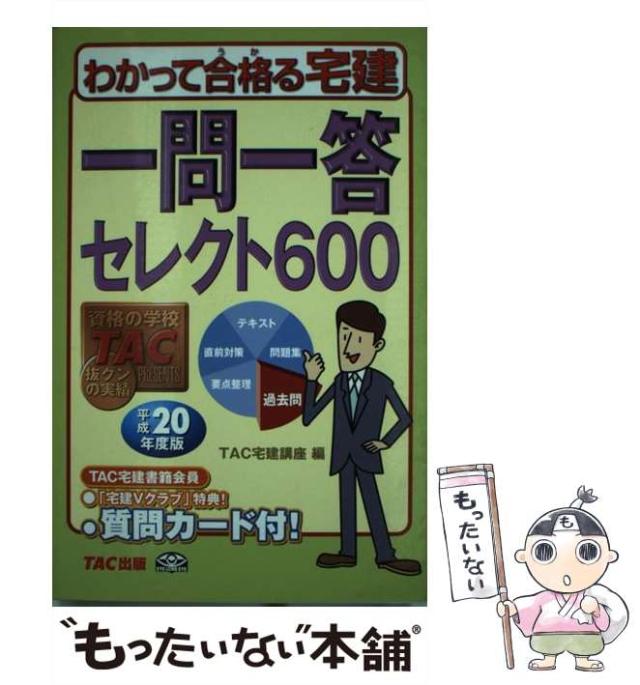 商品名:【中古】 わかって合格る宅建一問一答セレクト600 平成20年度版 / TAC宅建講座、タック / TAC出版事業部 [単行本]【メール便送料無料】