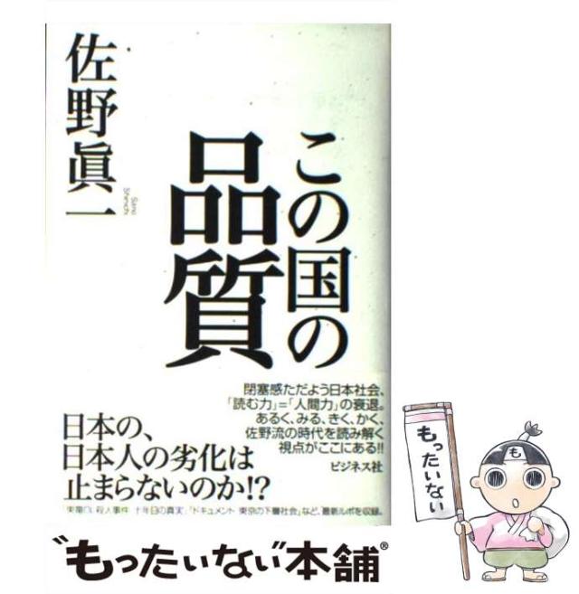 商品名:【中古】 この国の品質 / 佐野眞一 / ビジネス社 [単行本]【メール便送料無料】