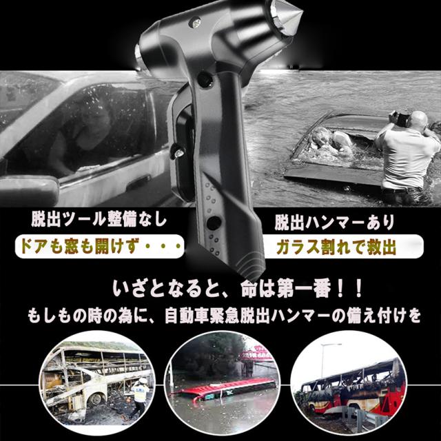 突然の事故と災害時で、活躍する脱出用ハンマーです。車載用防災,レスキューハンマーグッズです。 非常時、災害時に(ゲリラ豪雨や台風等で車内に閉じ込められた時)、車内に閉じ込められでもガラスを割って脱出できます。