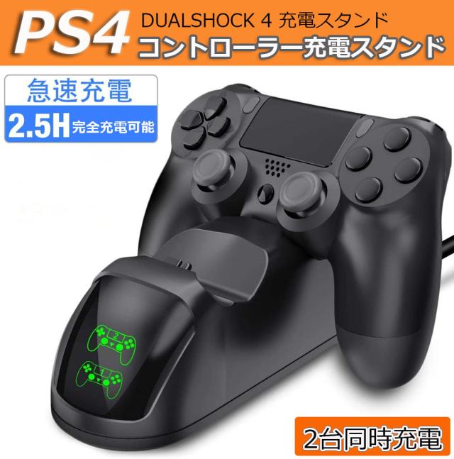 PS4 コントローラー 充電器 playstation4 充電 スタンド DS4/PS4 Pro/PS4 Slim 充電器コンセント 充電アダプター PS4 コントローラー 充電2台同時充電可能 DUALSHOCK4 充電 LED 指示ランプ付き