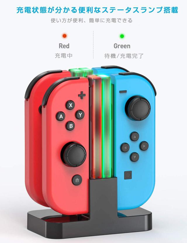 Joy-Con 充電 スタンド Nintendo Switch用 4台同時充電可能 急速充電 ジョイコン ニンテンドー スイッチ 充電ホルダー チャージャー コンパクト 充電指示LED付き