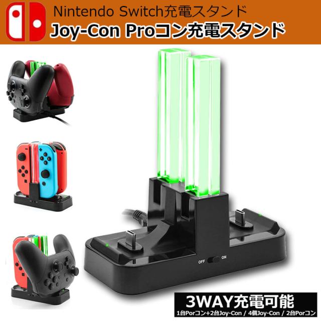 Joy-Con Proコン コントローラー 充電 スタンド Nintendo Switch用 3WAY充電可能 ジョイコン ニンテンドー スイッチ プローコントローラー 充電ホルダー チャージャー 充電指示LED付き