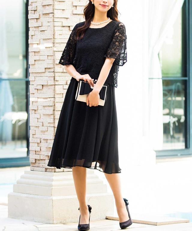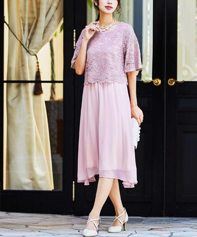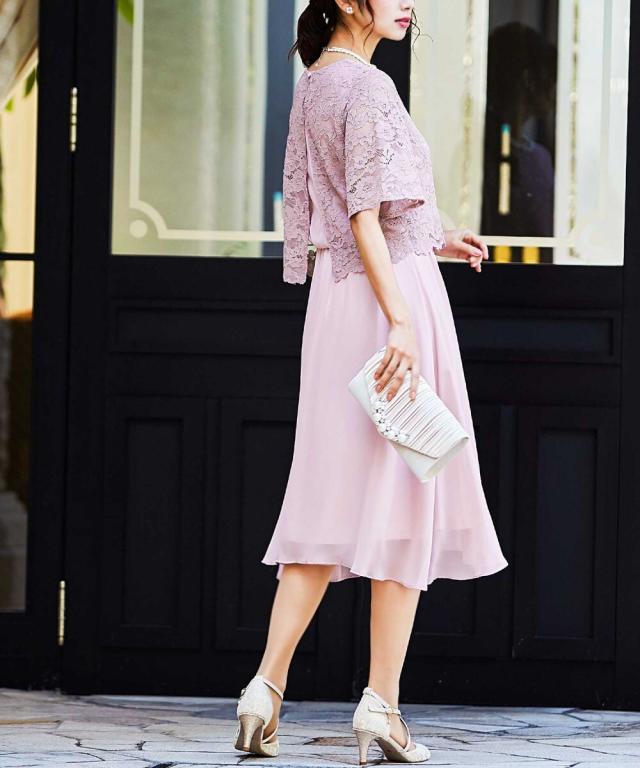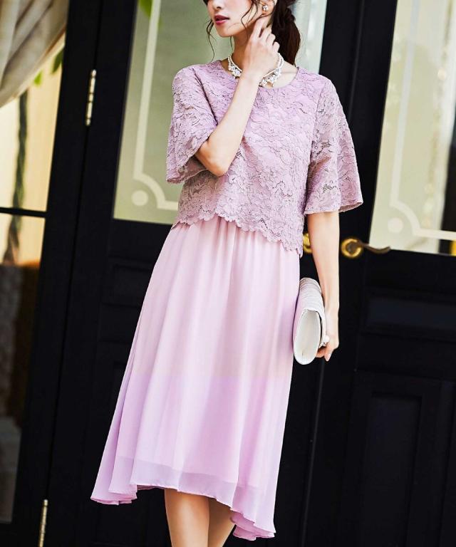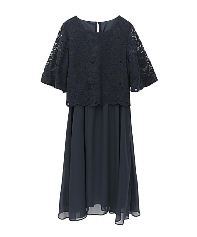 ボレロ風のレーストップスがドッキングされたかのようなワンピース。