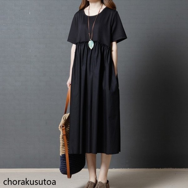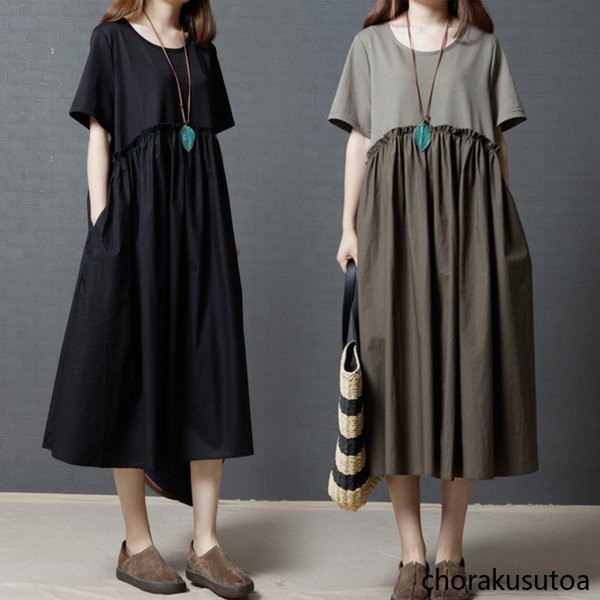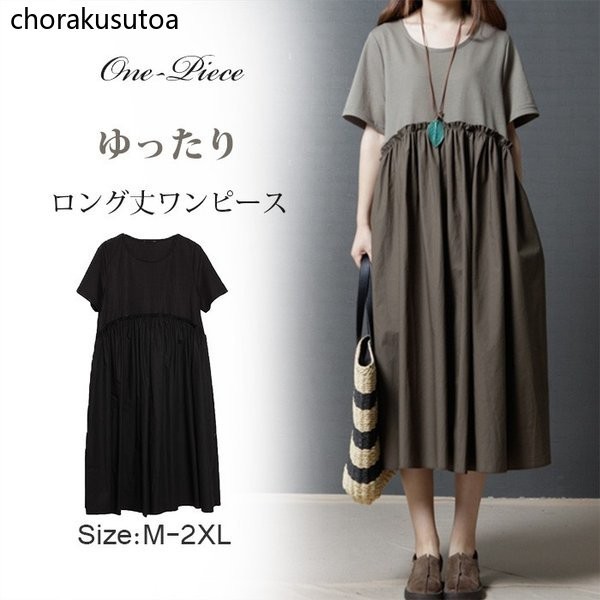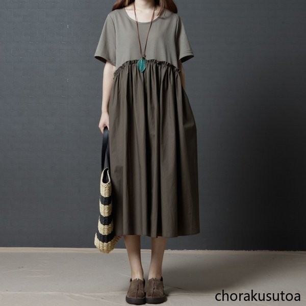 ワンピース レデイース 夏 マキシ丈 半袖 コットンリネン シャツワンピース aライン ゆったり 切り替え 体型カバー おしゃれ きれいめ 大人 30代 40代 50代