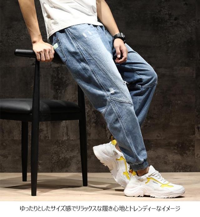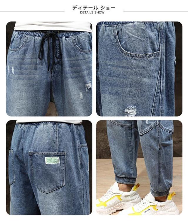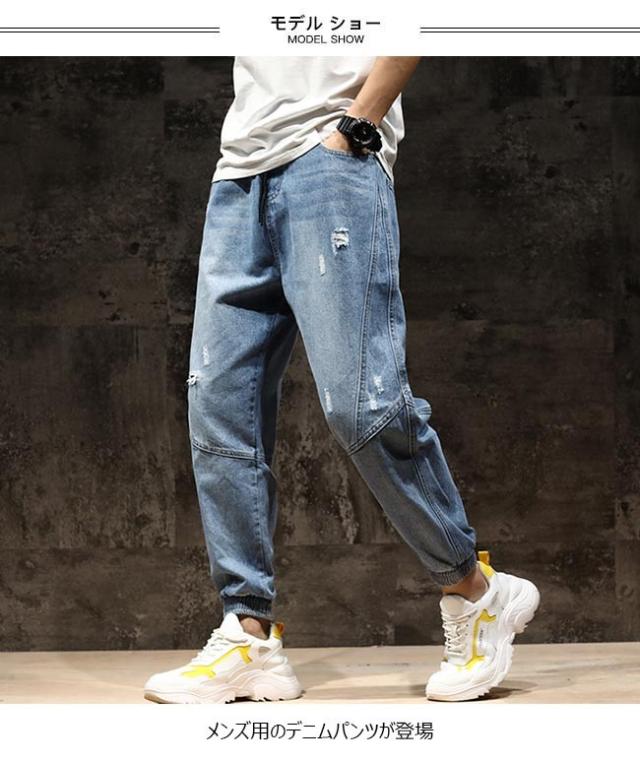 デニムパンツ メンズ Gパン ダメージ加工 デニム サルエルパンツ 九分丈 ゆったり 男性 ジーンズ ジーパン お洒落 長ズボン カジュアル