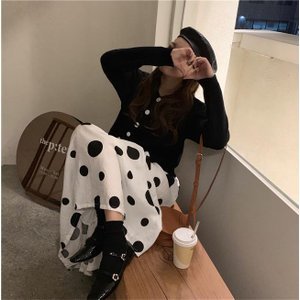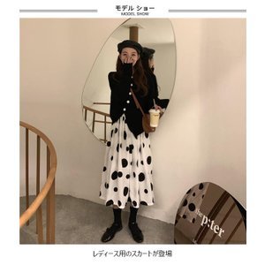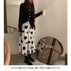 ロングスカート 水玉柄 レディース マキシスカート Aラインスカート ドット柄 スカート 女性 水玉柄スカート ウエストゴム お
