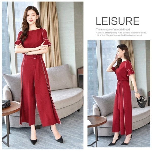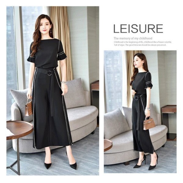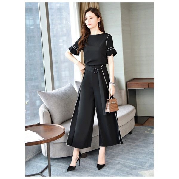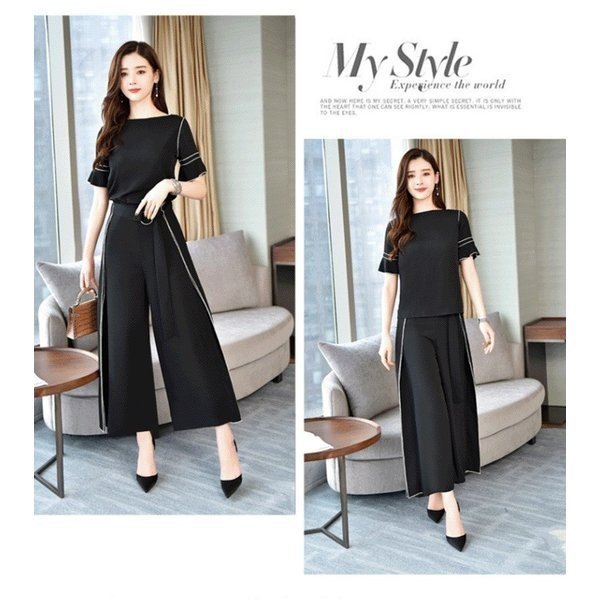 セットアップ ワイドパンツ レディース きれいめ 2点セット フォーマル パンツドレス 結婚式 シフォンブラウス ガウチョパンツ