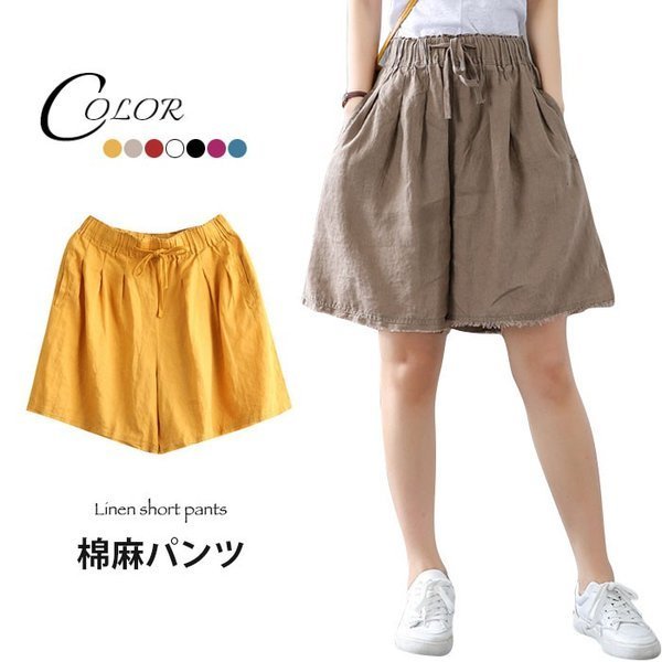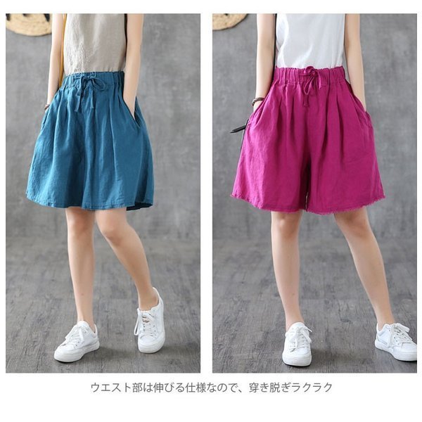 棉麻パンツ レディース 棉麻 棉 麻 リネンパンツ リネン ワイドパンツ ハーフパンツ ショートパンツ ゆったり ゆるパンツ ポ