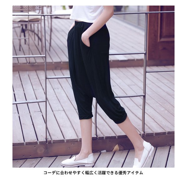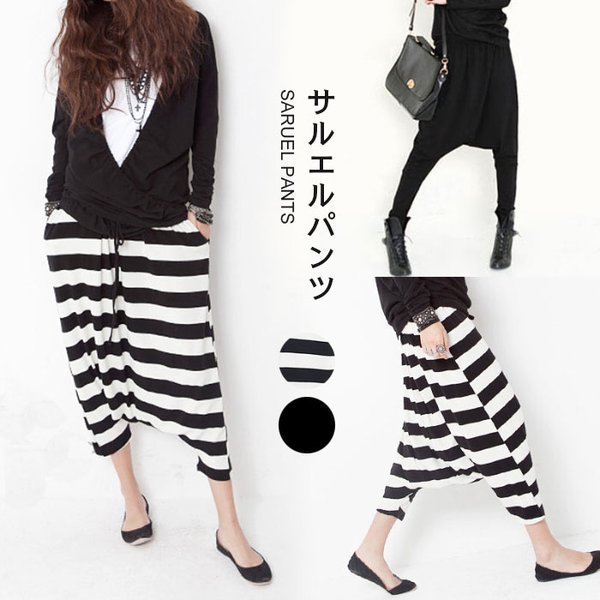 サルエルパンツ レディース ジョッパーズパンツ 無地 ボーダー おしゃれ シンプル 動きやすい ゆったり 7分丈 カジュアル ボ
