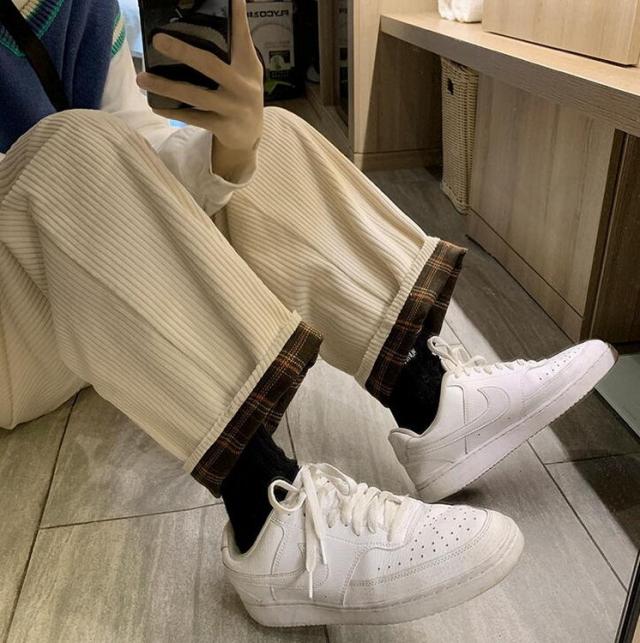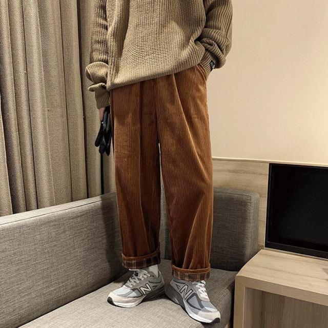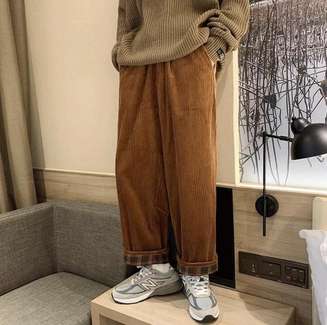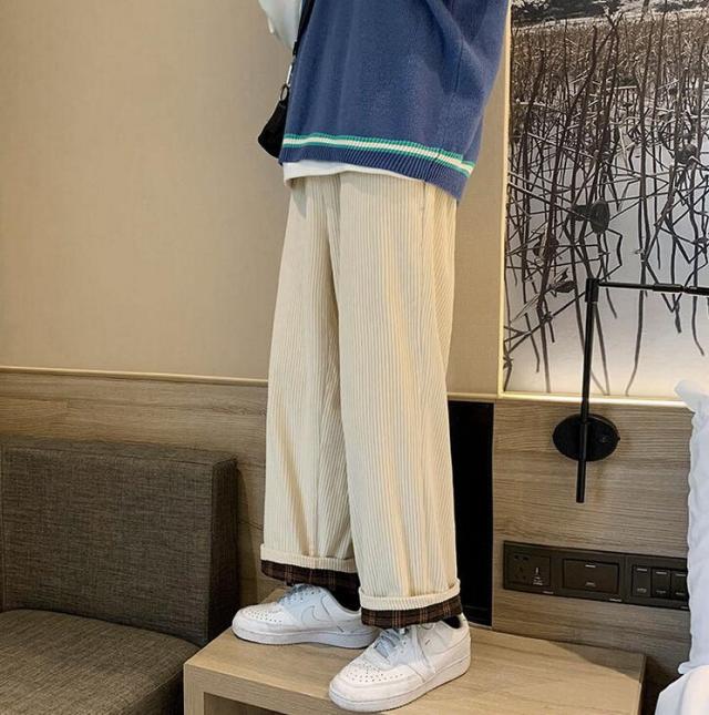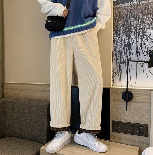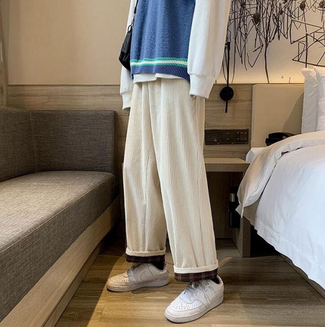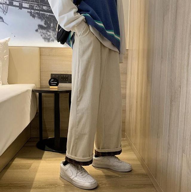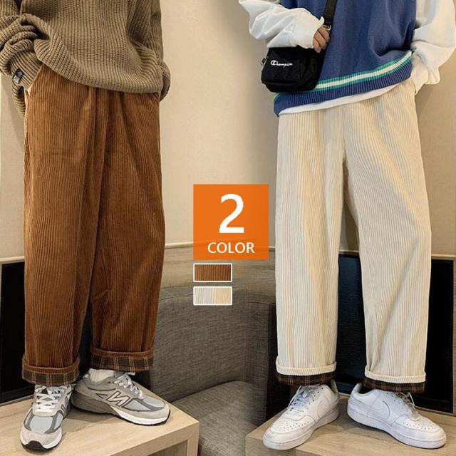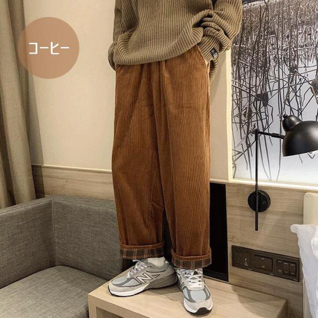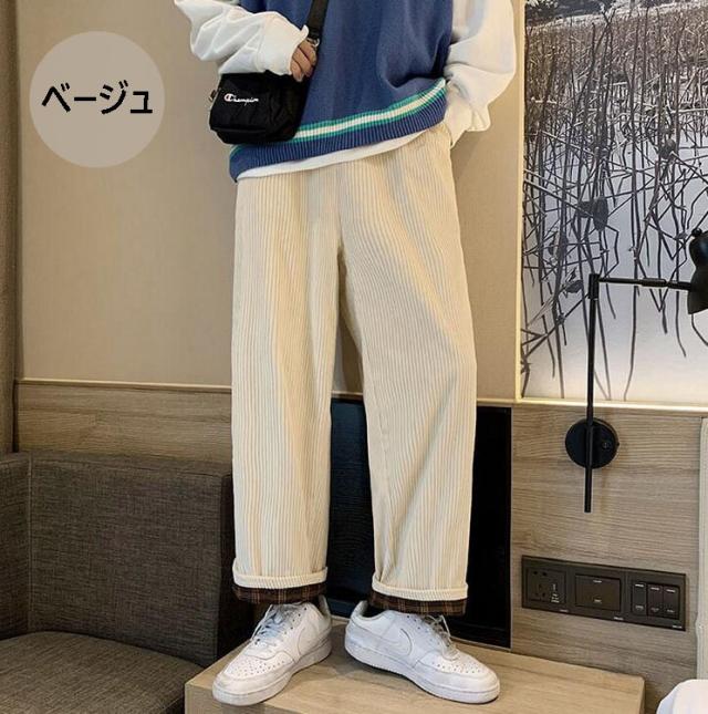 ワイドパンツ メンズ コーデュロイパンツ ワイドルック 秋冬 チノパン イージーパンツ ストレート 韓国ファッション オシャレカジュアルボトムス リブパンツ