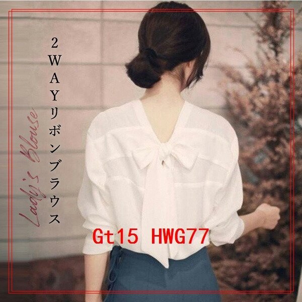 ブラウスシャツ長袖レディースレディースブラウス長袖ブラウス2wayバックリボンVネックシャツブラウス大人かわいいカジュアルオシ