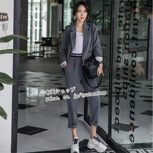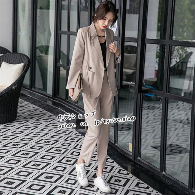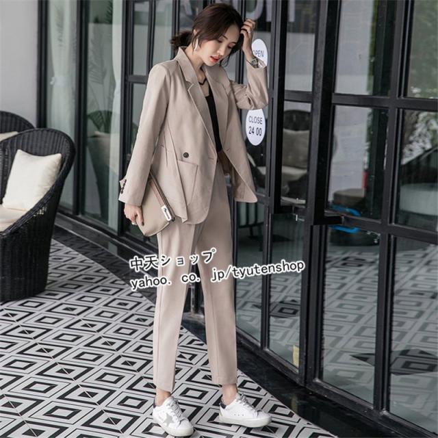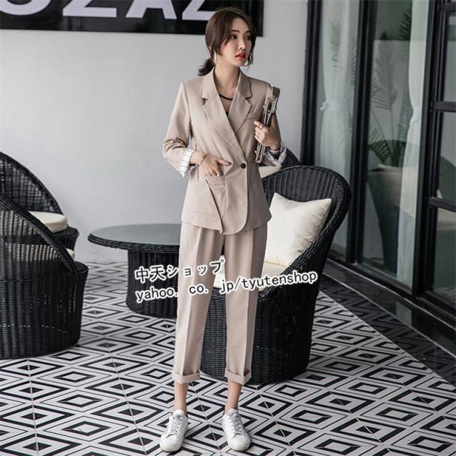 パンツスーツ スーツレディース 2点セット 長袖ジャケット+ロングパンツ 九分パンツ テーラード 秋服 ビジネススーツ 女性 着痩せ 通勤 入学式 卒業式 大人