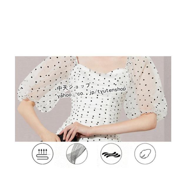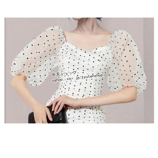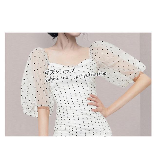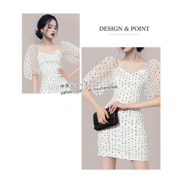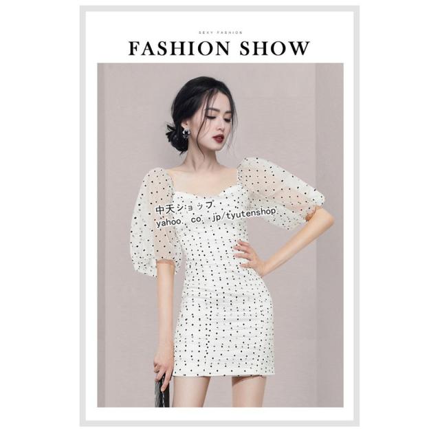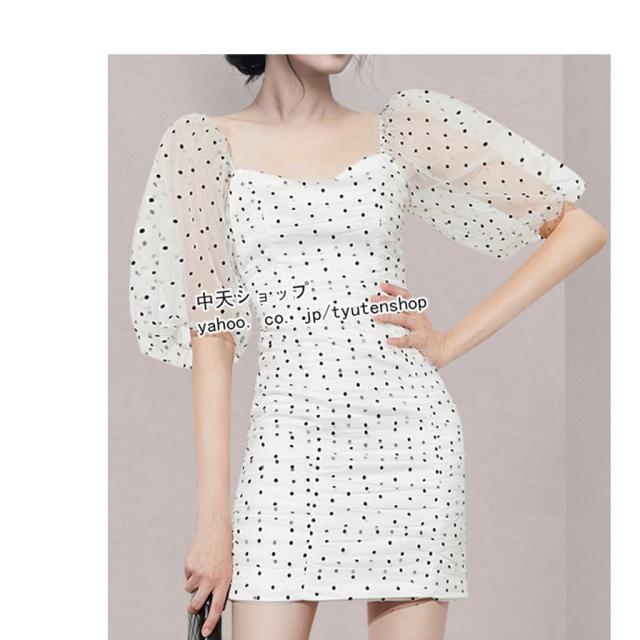 夏タイトワンピース レディース30代40代 半袖ワンピース ミニワンピース お呼ばれワンピース パーティー ドット柄 パフスリーブ 披露宴 カジュアル 着痩せ