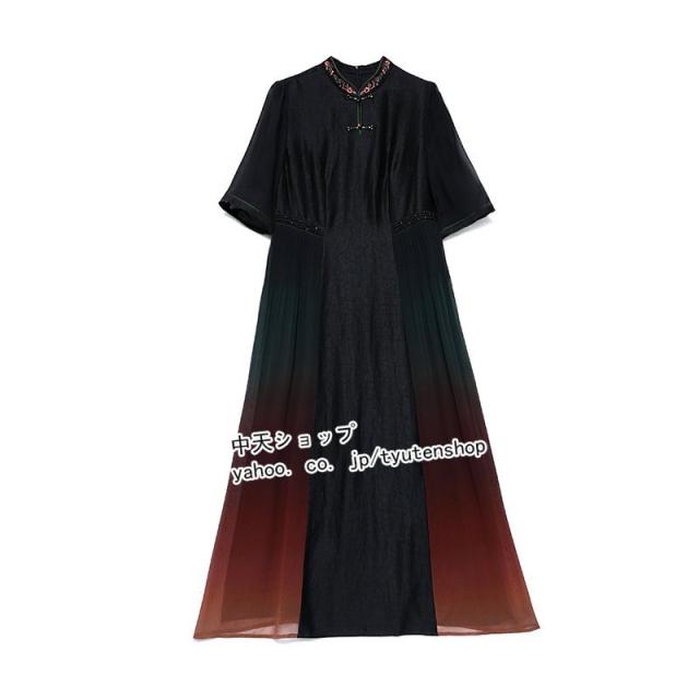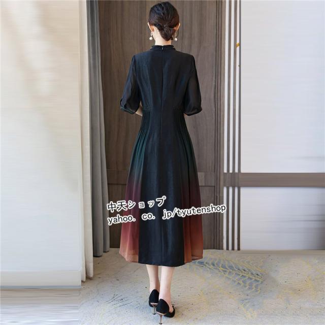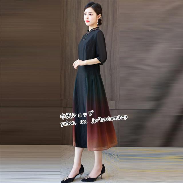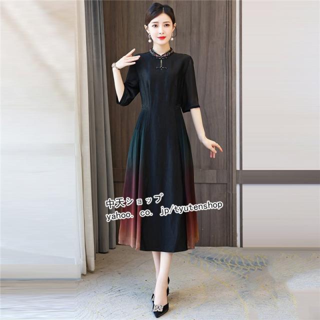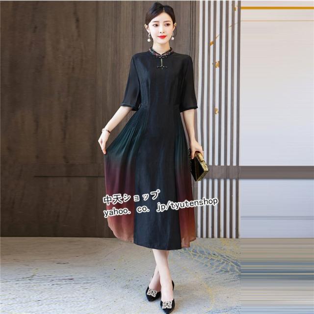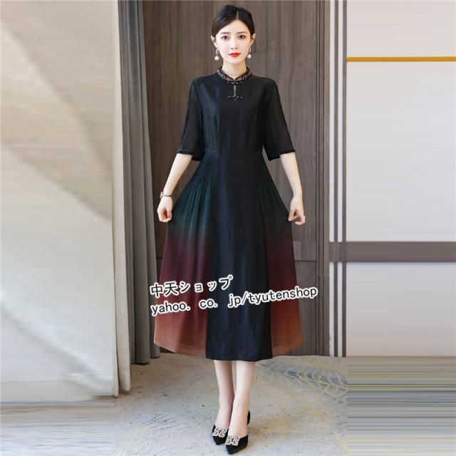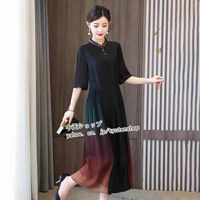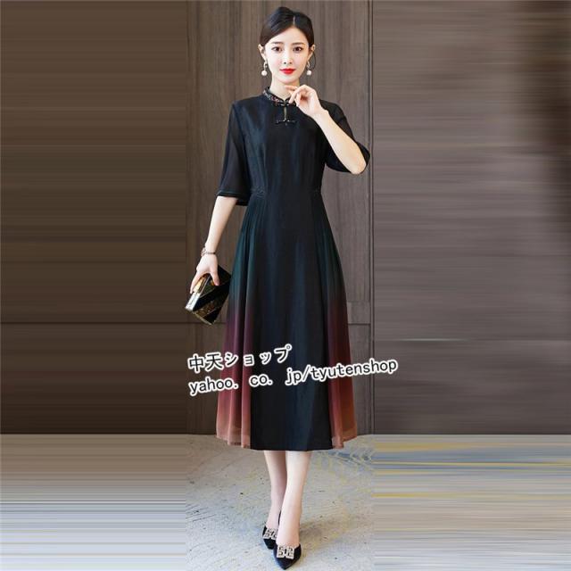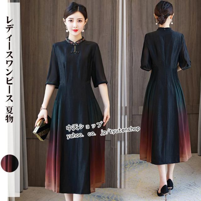 チャイナドレス チャイナ風ワンピース ワンピース 夏 半袖 ワンピースレディース40代50代 ロングワンピース 大きいサイズ 着痩せ 結婚式 披露宴 気質 2021