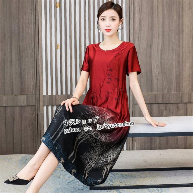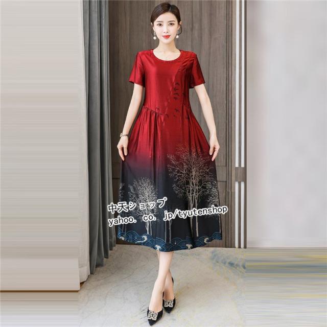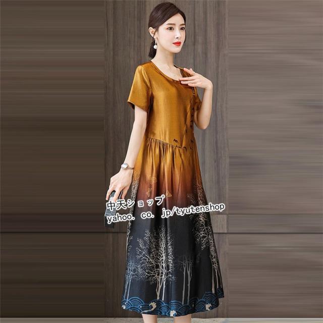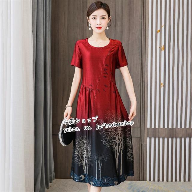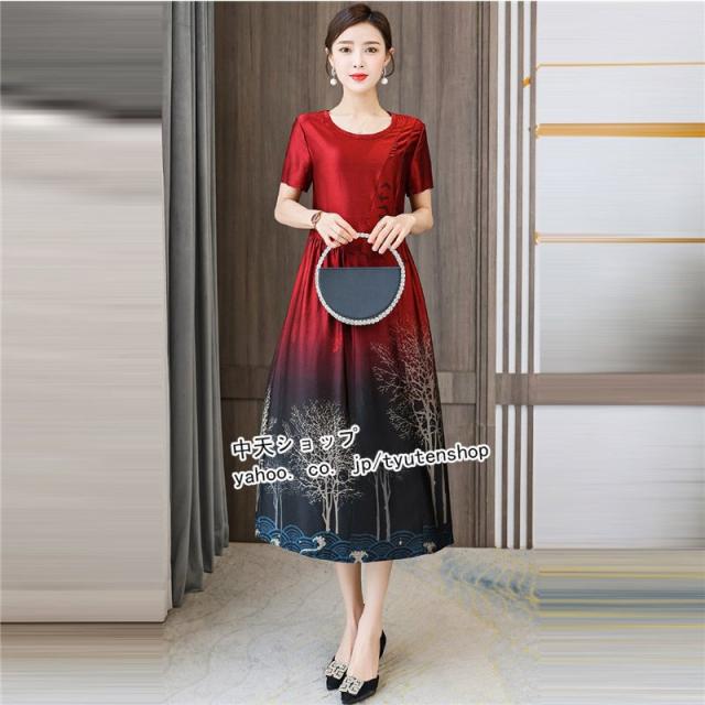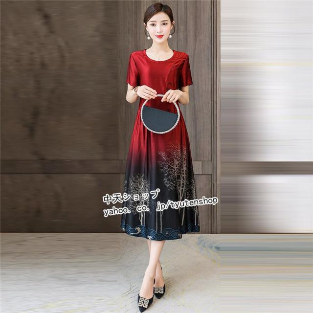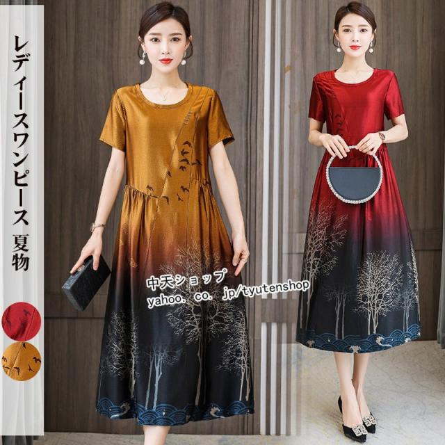ワンピースレディース 40代 50代?ミモレワンピース 夏 半袖 ママワンピース 大きいサイズ お呼ばれ 気質 着痩せ エレガント 大人 結婚式 披露宴 パーティー
