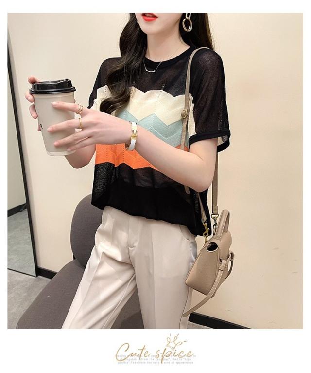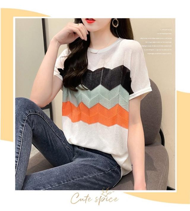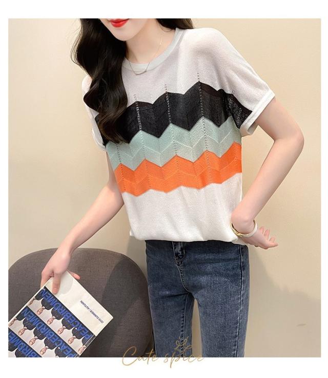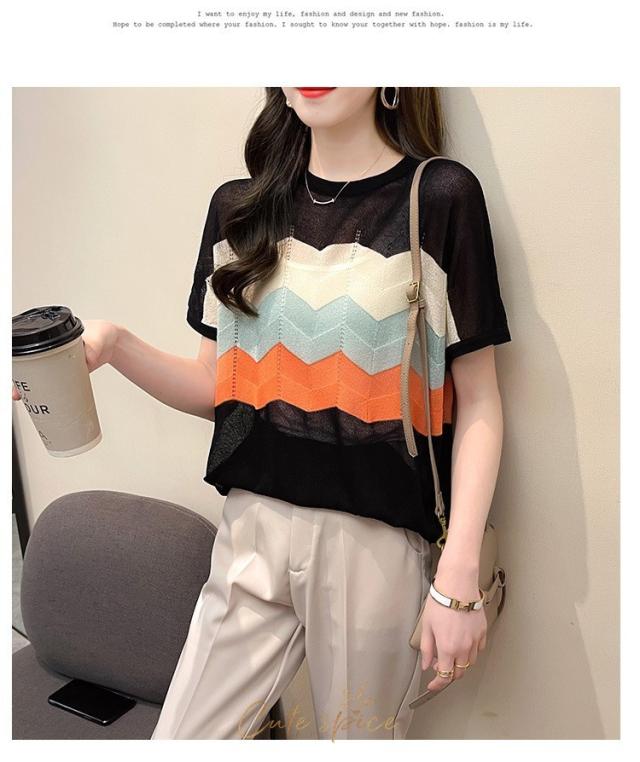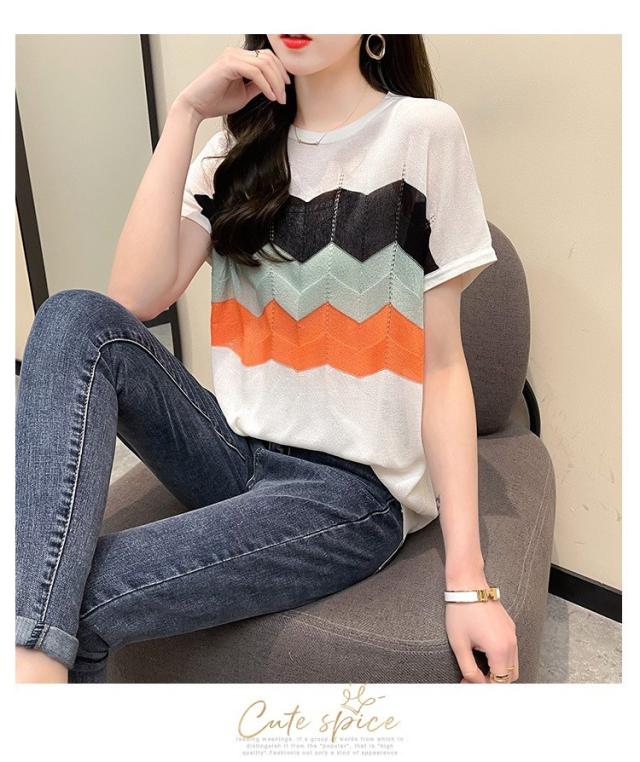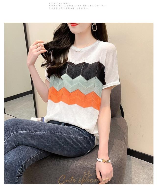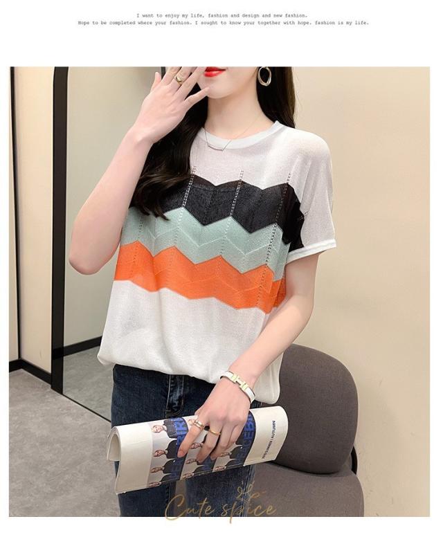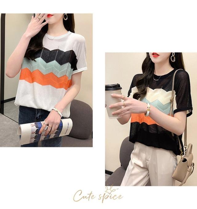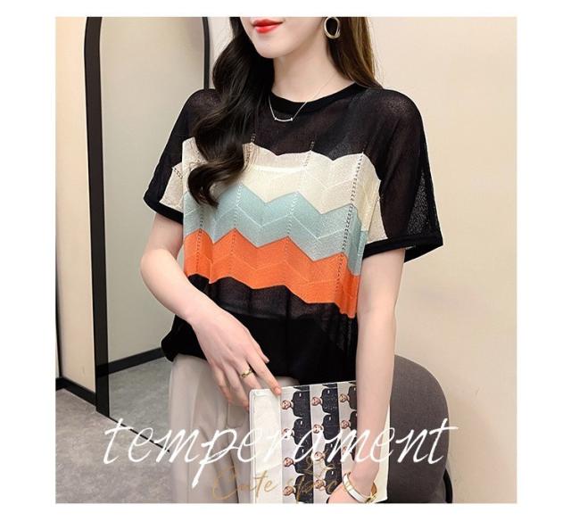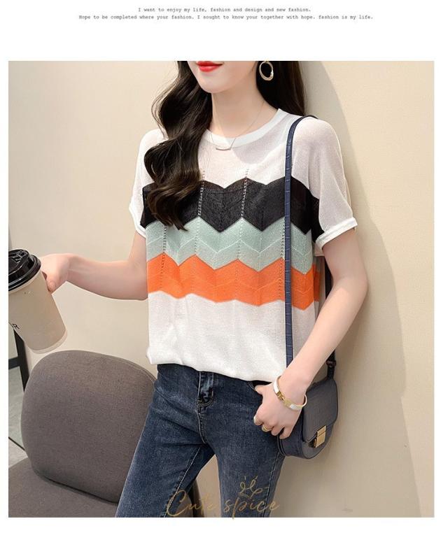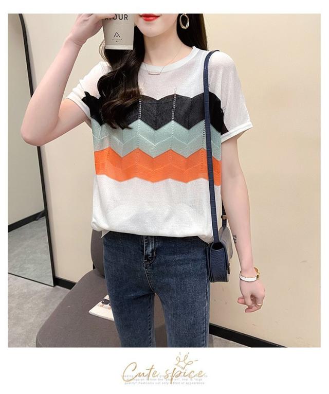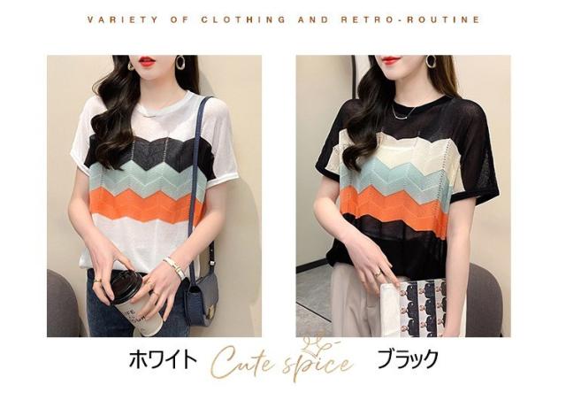 Tシャツ レディース 40代 春夏新作 オシャレ半袖トップス 白ニットソー 薄手 レション 配色ボーダー 大人 通勤 ゆったり Tシャツ カジュアル韓国風 UVカット