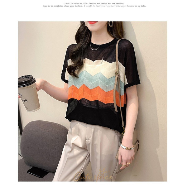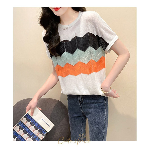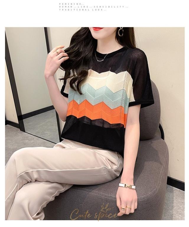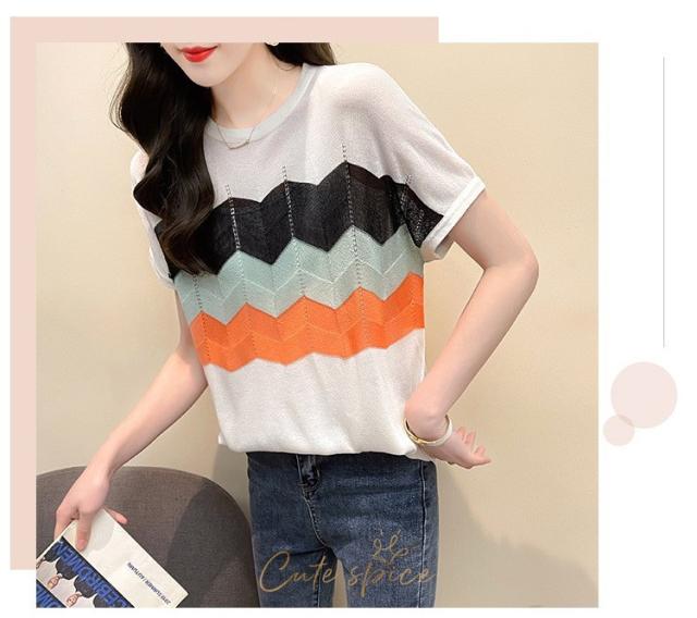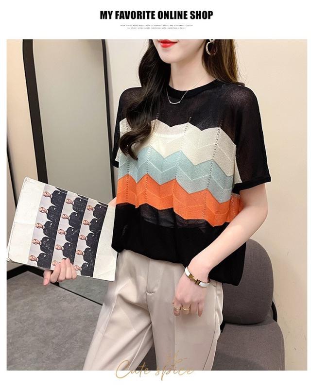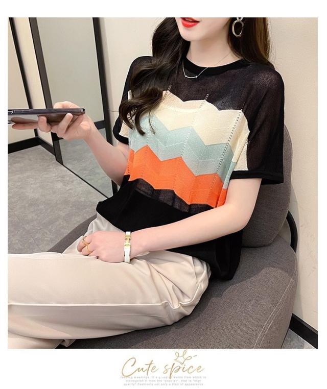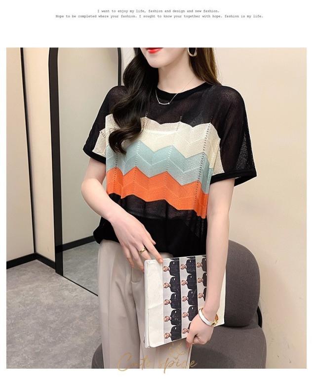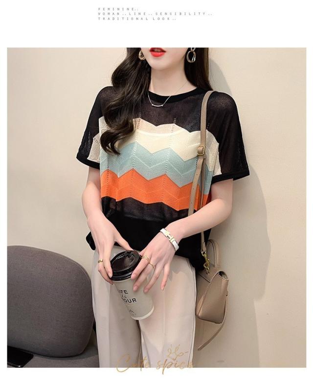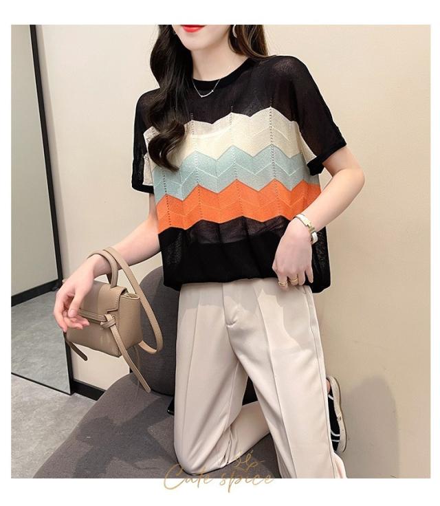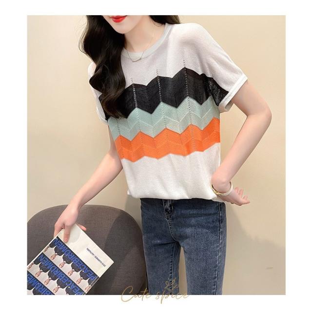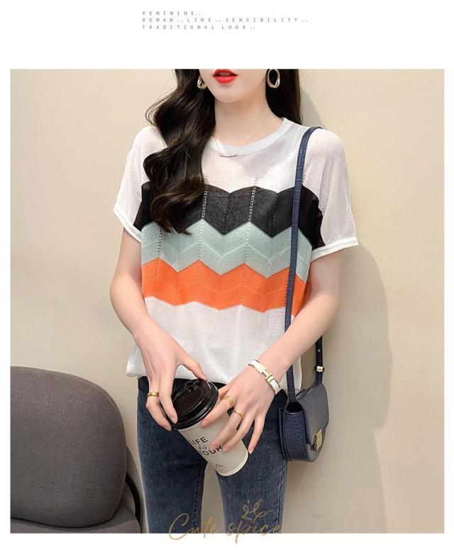 Tシャツ レディース 40代 春夏新作 オシャレ半袖トップス 白ニットソー 薄手 レション 配色ボーダー 大人 通勤 ゆったり Tシャツ カジュアル韓国風 UVカット