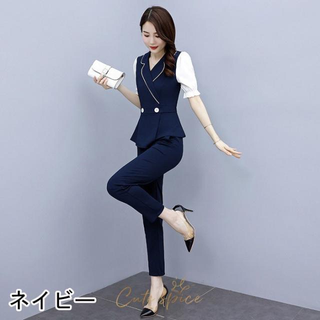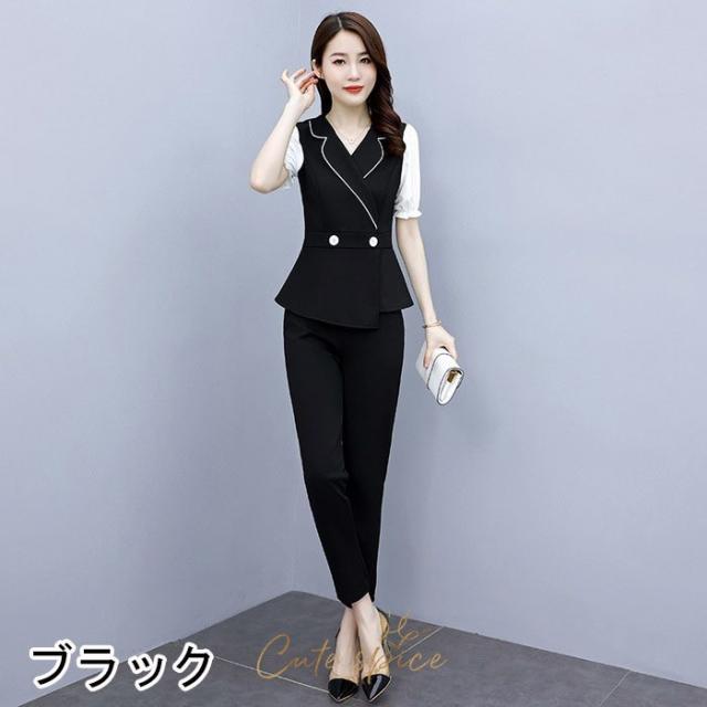セットアップ レディース 春夏 半袖ブラウス ロング丈パンツ 上下セット オシャレセットアップ おしゃれ お洒落 通勤OL 30代 40代 50代 大きいサイズ 着痩せ
