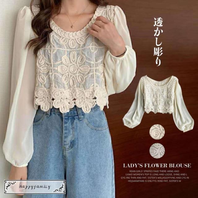 ブラウス トップス 長袖 シャツ レディース 春夏 肌触り 透かし彫り お洒落 細身 部屋着 夏 涼しい い 通勤 通学 20代 30代 女子 代引不可