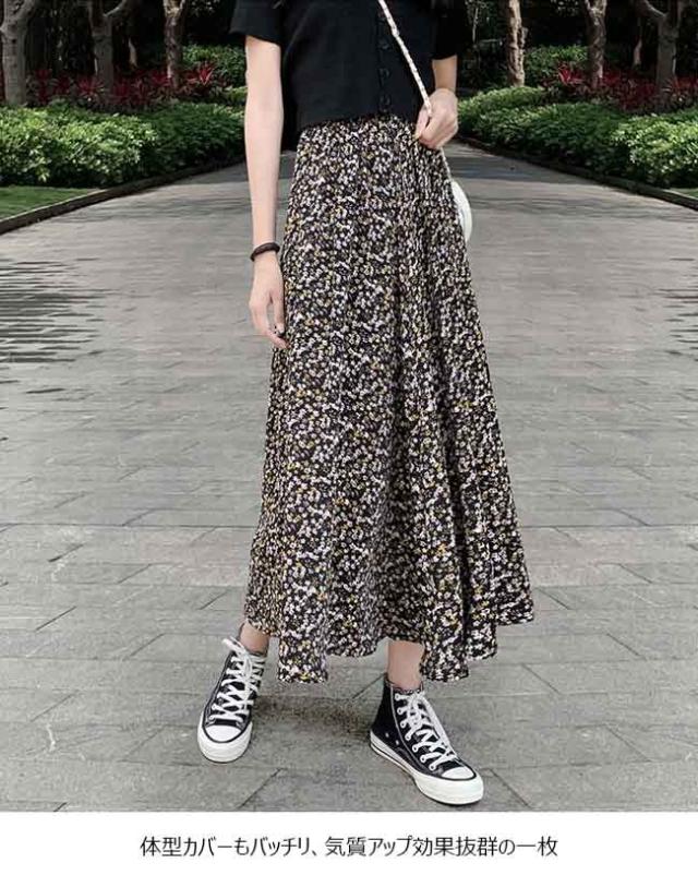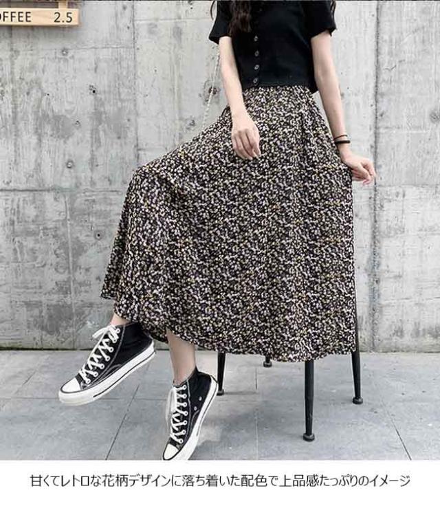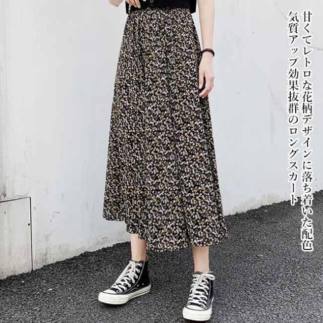 ロングスカート レディース 花柄 スカート シフォンスカート マキシスカート 夏 Aラインスカート サマースカート 春 花柄スカート レトロ