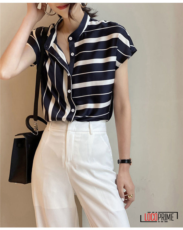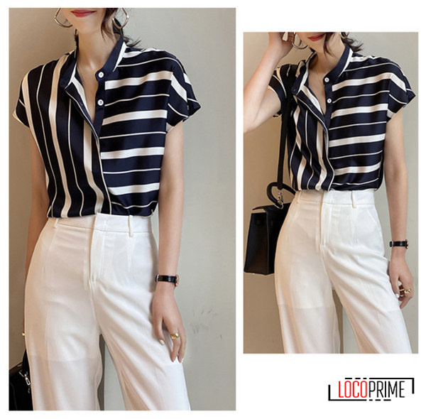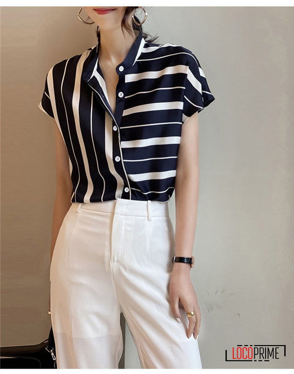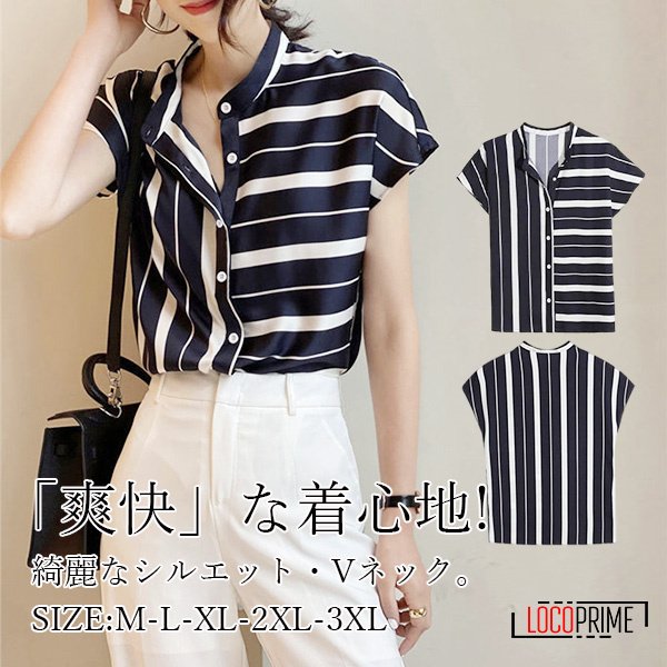 ブラウス シャツ レディース ストライプ柄 体型カバー 半袖 着痩せ 細身 夏 カジュアルシャツ 大きいサイズ 仕事 通勤 オフィス ゆったり 20代 30代 40代 50代