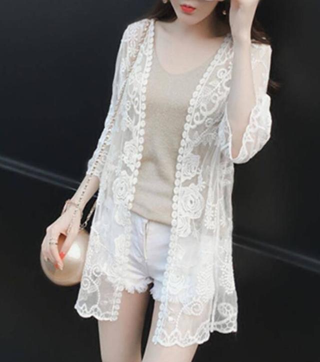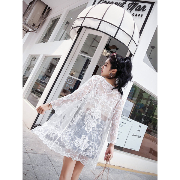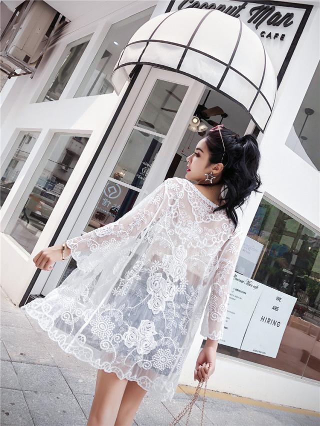 ロングカーディガン レディース レース UVカット 紫外線対策 冷房対策 前開き 夏 シフォン 大きいサイズ リゾート フレア 薄手 上着 おしゃれ 羽織り 海 透け感