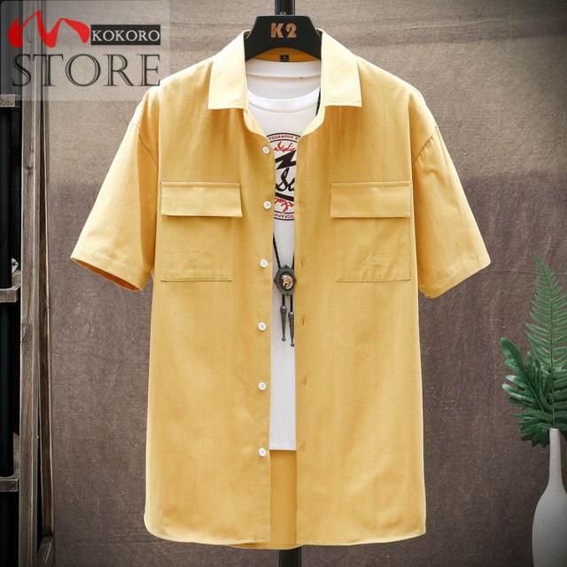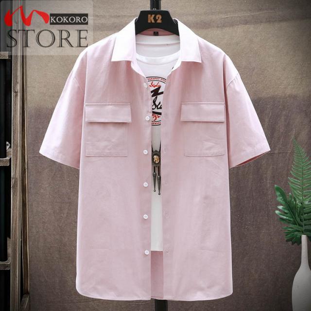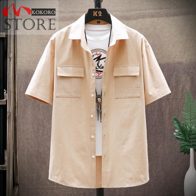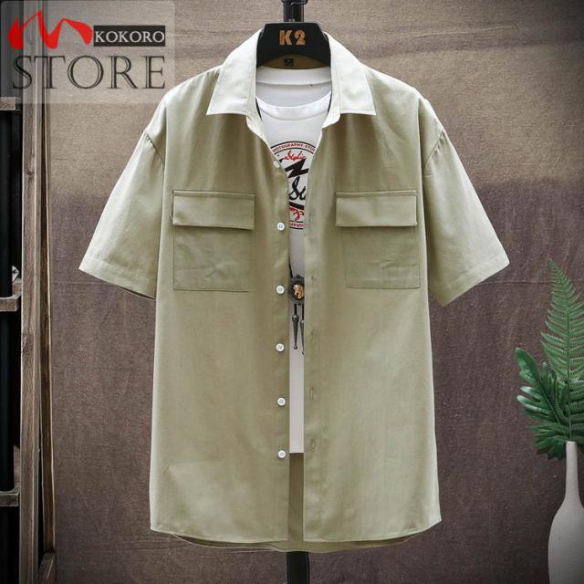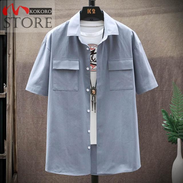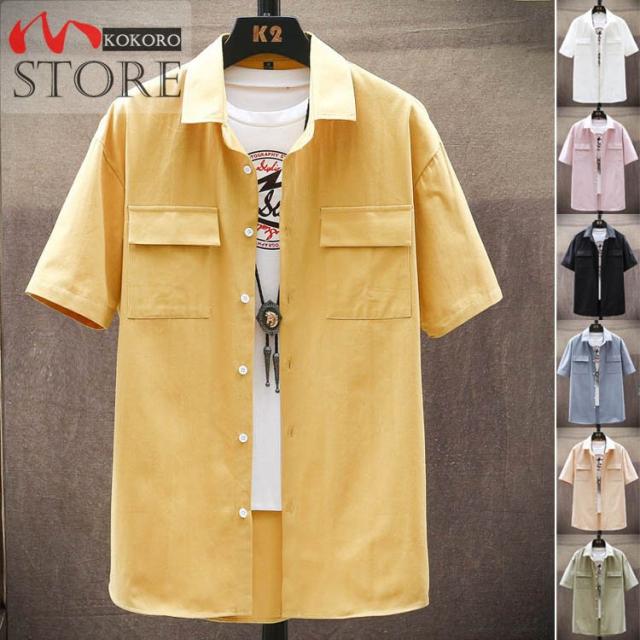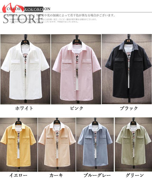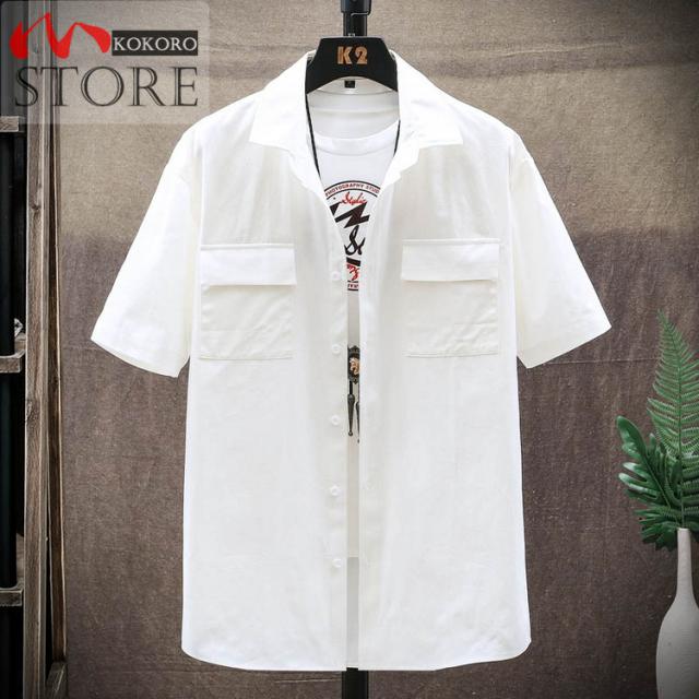 メンズシャツ 夏物 白シャツ ゆったりシャツ 薄手 胸にポケット付き トップス カジュアル 半袖シャツ おしゃれ 20代 30代 40代