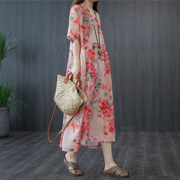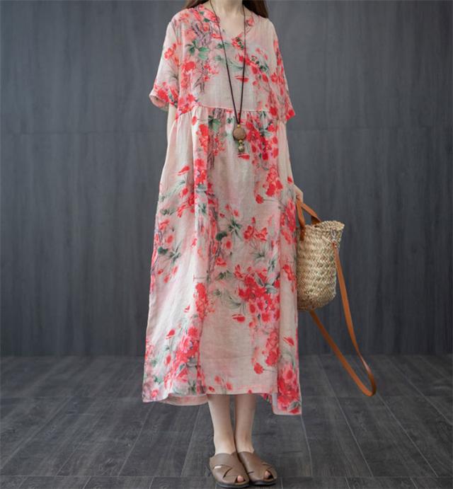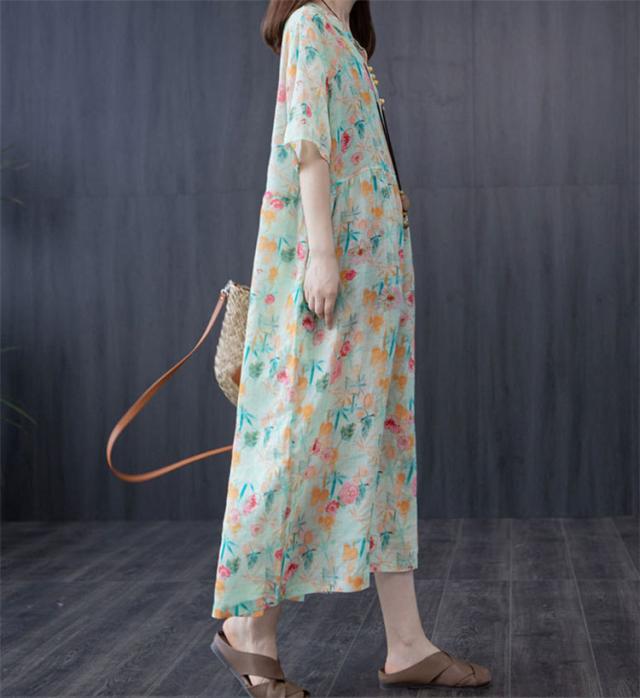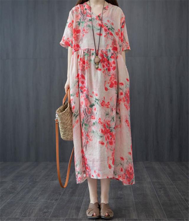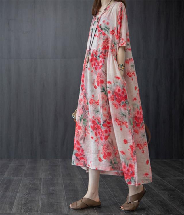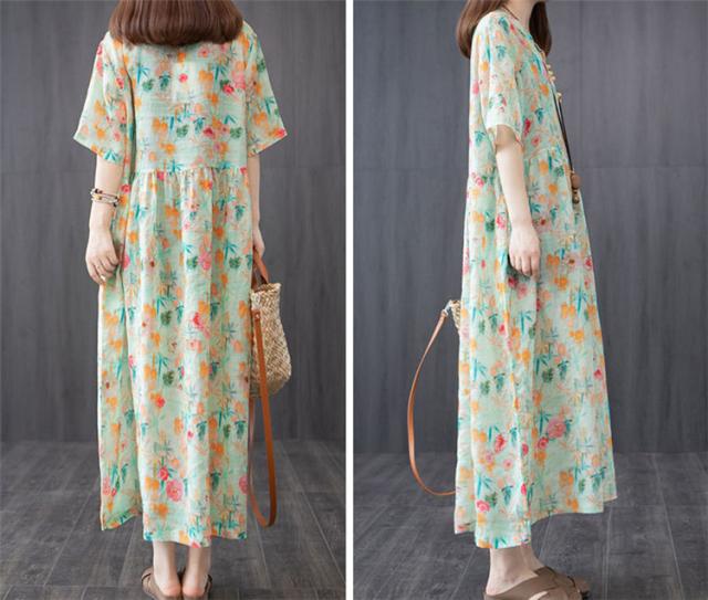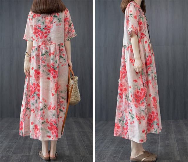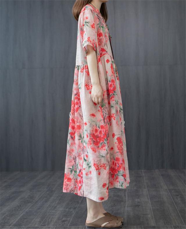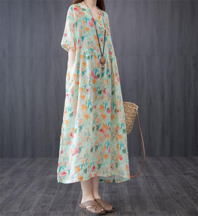 ワンピース レディース 40代 20代 きれいめ 夏服 半袖 マキシワンピース 綿麻 ロングワンピース 花柄 大きいサイズ おしゃれ 可愛い 着痩せ 上品 通勤 OL 新品