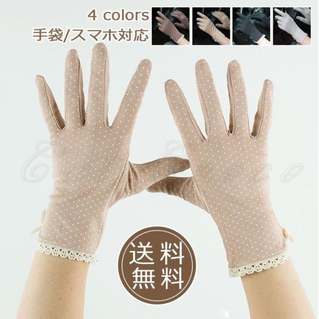 手袋 レディース スマホ対応 ドット柄 レース 蝶結び 紫外線対策 アウトドア 自転車 夏 プレゼント エレガント おしゃれ