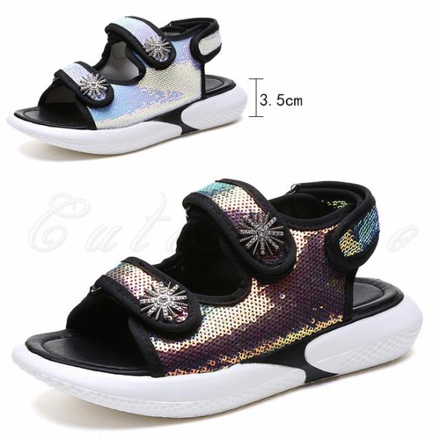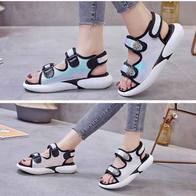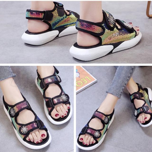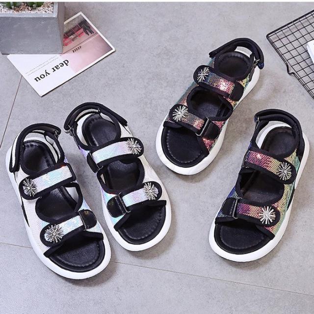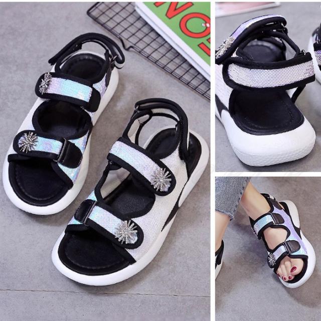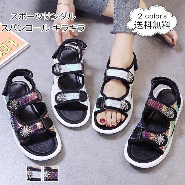 スポーツサンダル レディース スパンコール カジュアル キラキラ フラット 美脚 痛くない 疲れにくい サマーサンダル オシャレ