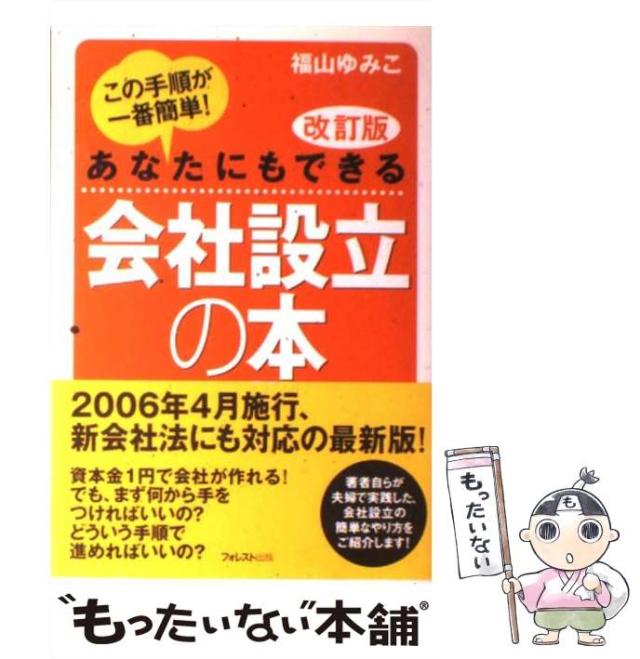 商品名:【中古】 あなたにもできる会社設立の本 この手順が一番簡単! 改訂版 / 福山ゆみこ / フォレスト出版 [単行本]【メール便送料無料】