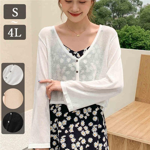 カーディガン レディース トップス 透け感 涼しい シアー 無地 ショート丈 カジュアル ゆったり オーバーサイズ 日焼け対策 冷房対策