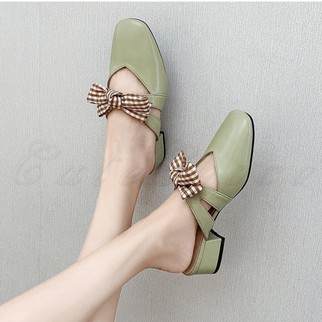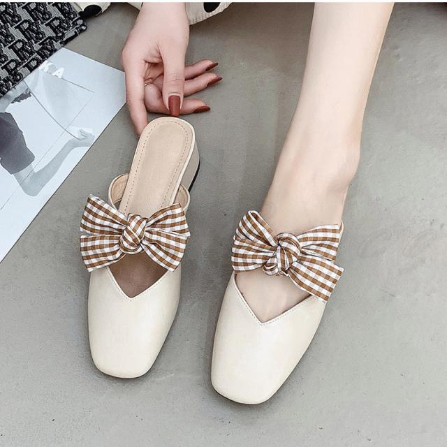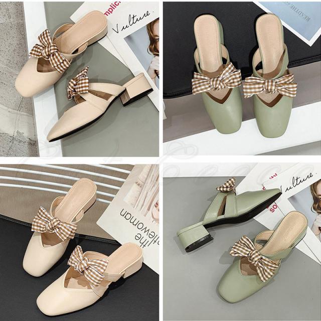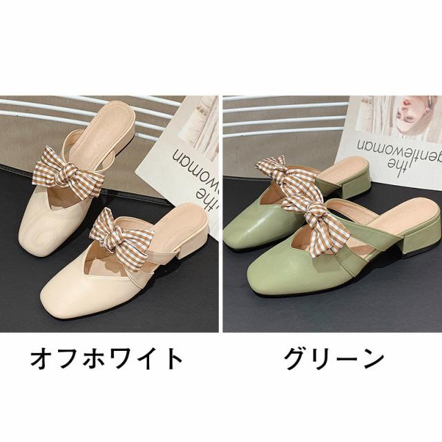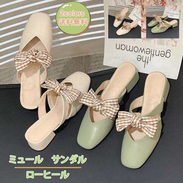 ミュール レディース サンダル ローヒール スクエアトゥ ちょう結び付き かかとなし 滑り止め 歩きやすい 履きやすい アウトドア きれいめ おしゃれ