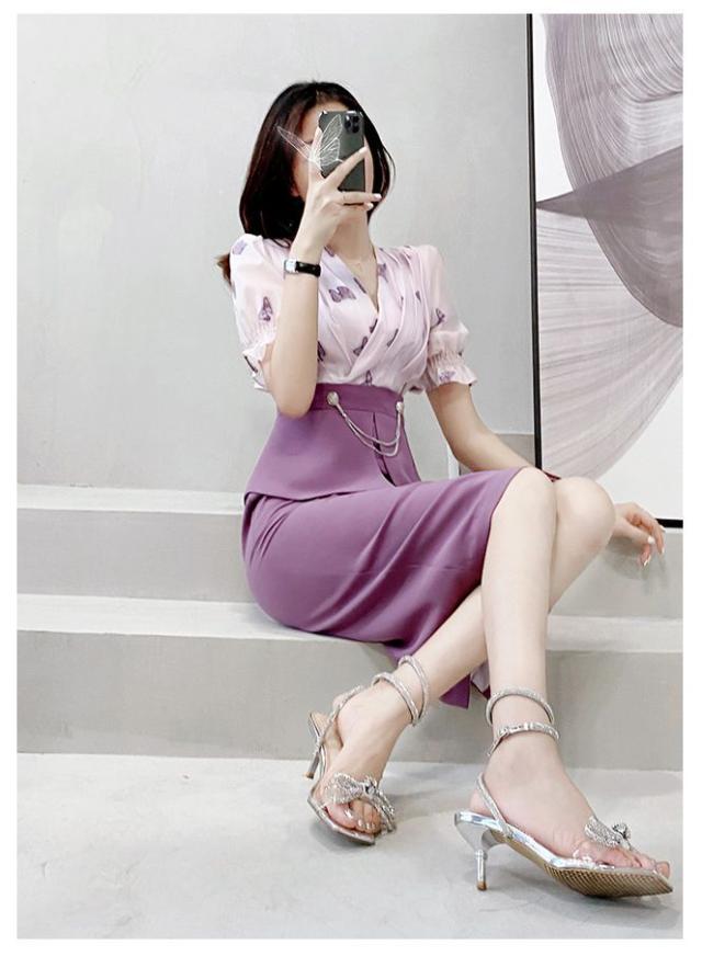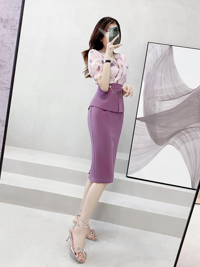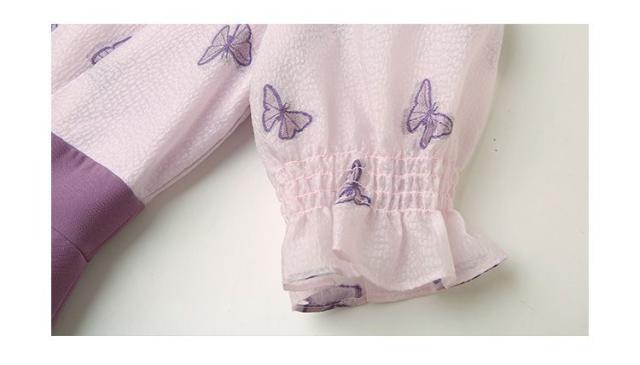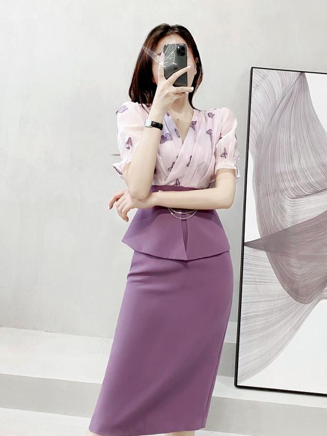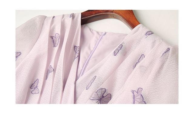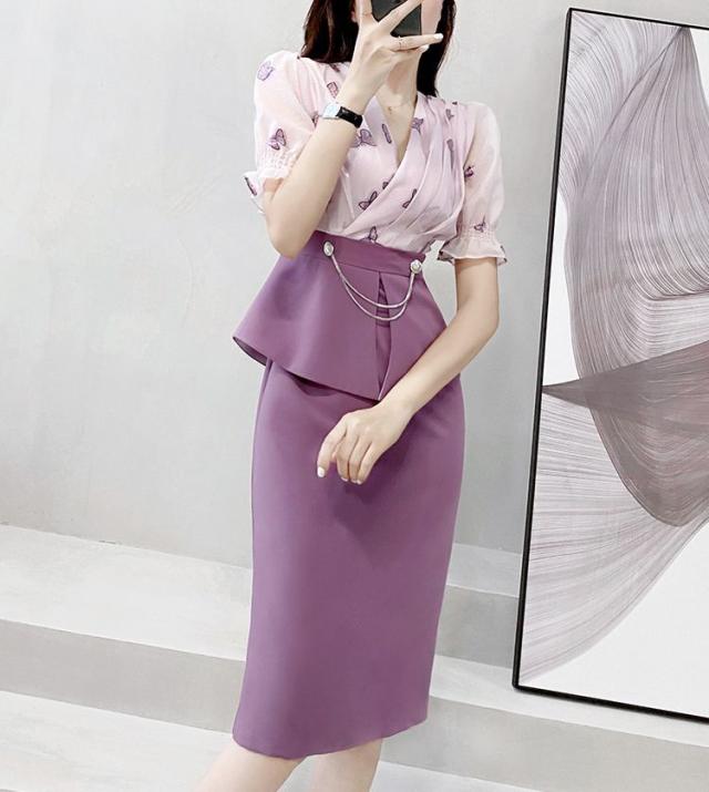 ワンピース ドッキングワンピ パフスリーブ 袖口フリル カシュクール ビジュー 上品 ペプラム 蝶 女子旅 ママスタイル ガーリー 美人