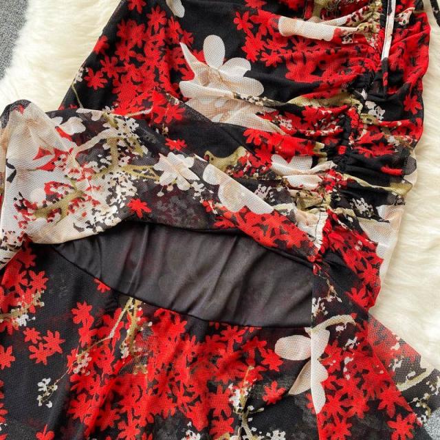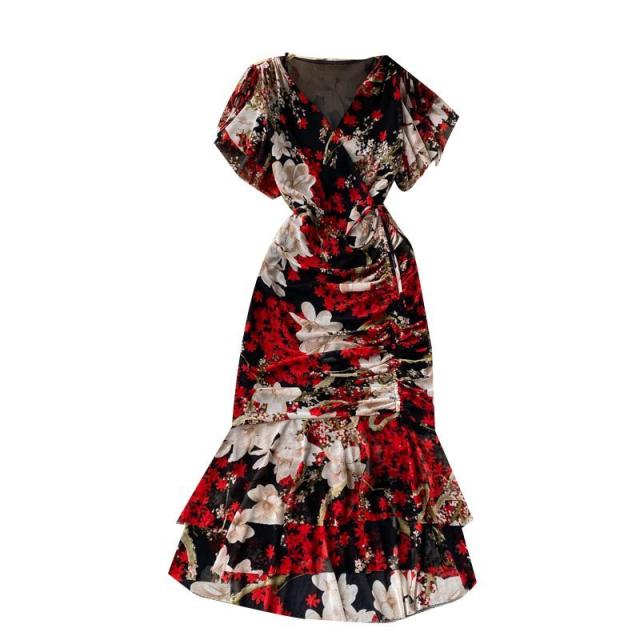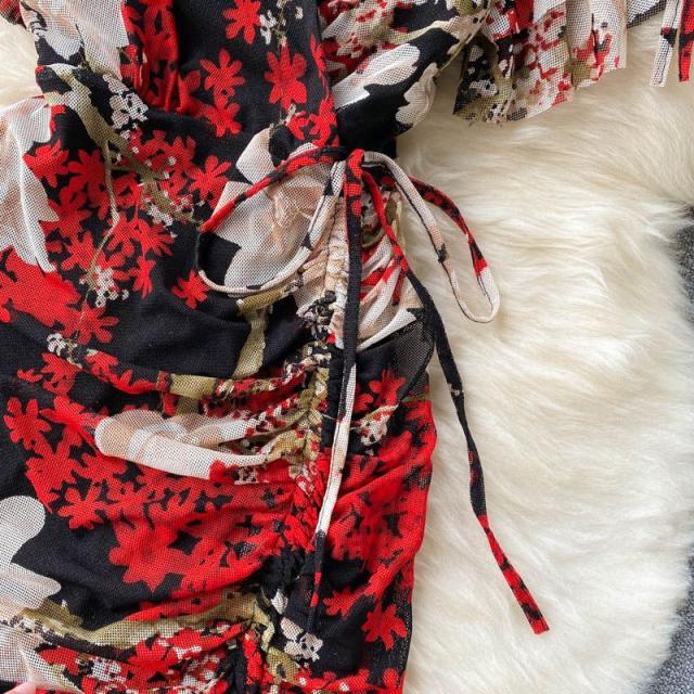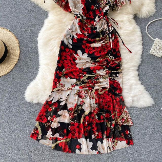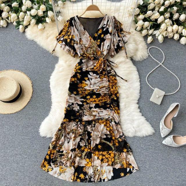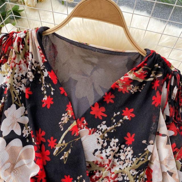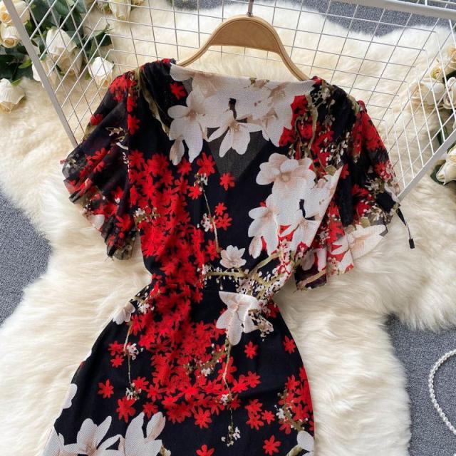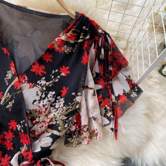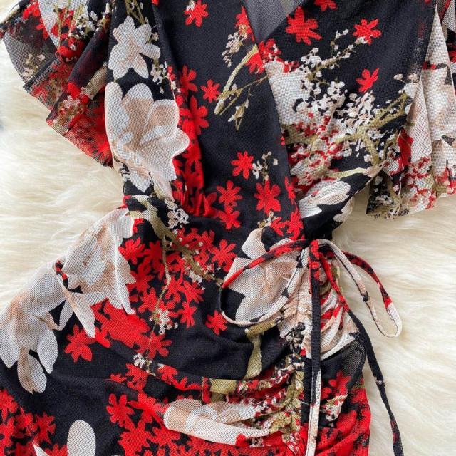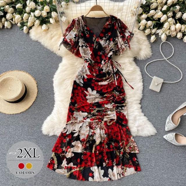 ワンピース 花柄 ウエストシェイプ カシュクール 総柄プリント お出かけ クール 清楚 リゾート 女子会 休日スタイル お出かけファッション