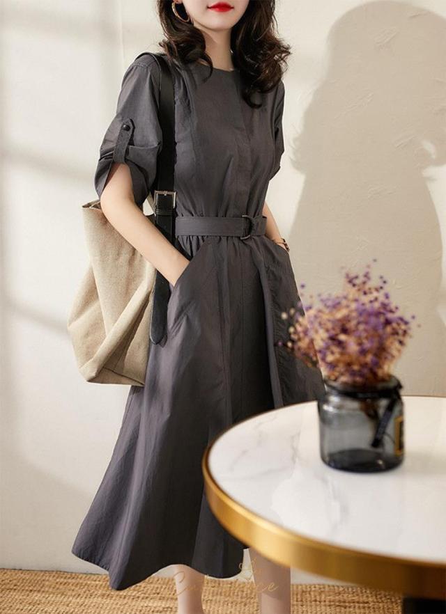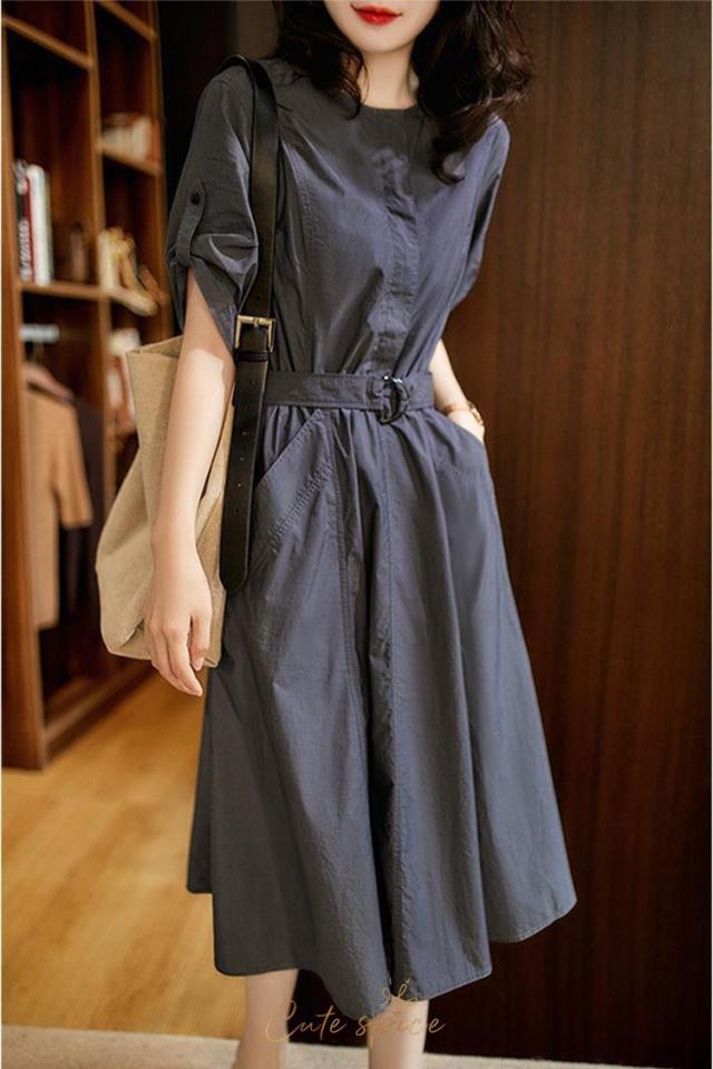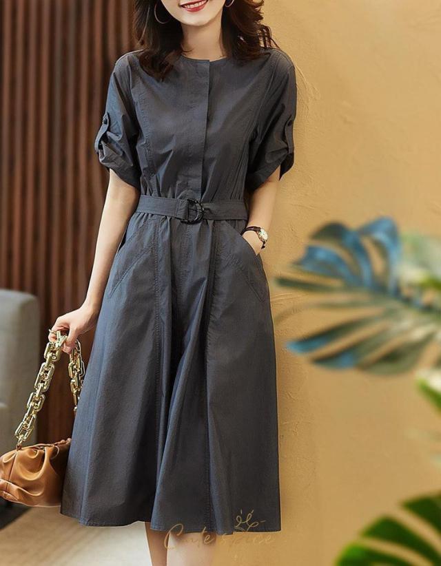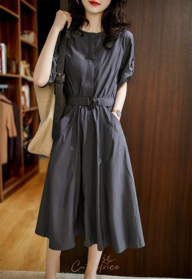 ワンピース レディース 40代 きれいめ マキシワンピース 春夏 半袖ワンピース 無地 Aラインスカート,シンプル オシャレ大人 ゆったり 韓国風 通勤OL 30代 50代