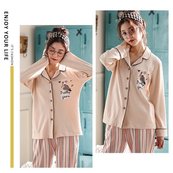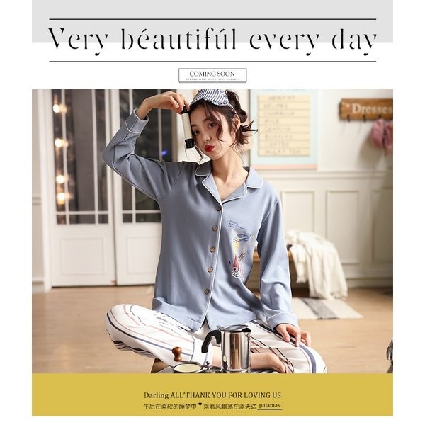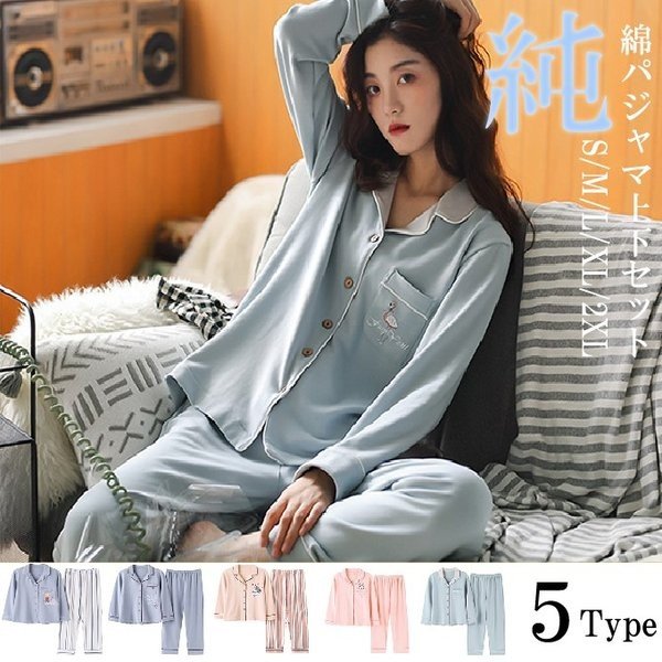 長袖パジャマ 前開き 純綿ルームウェア 上下セットパジャマ レディース/メンズ 春秋 セットアップ 長袖