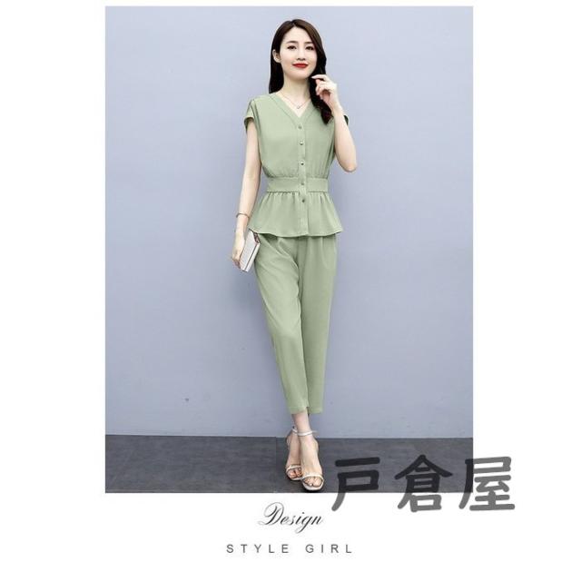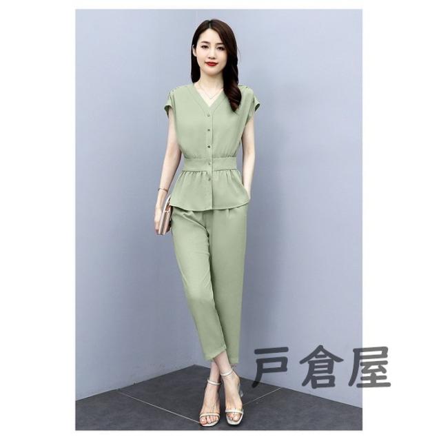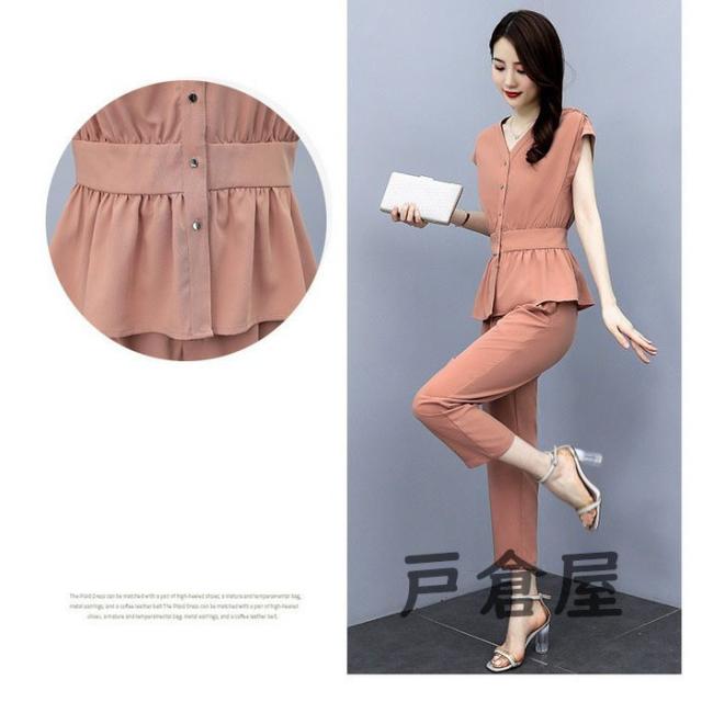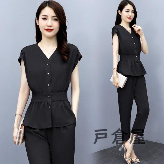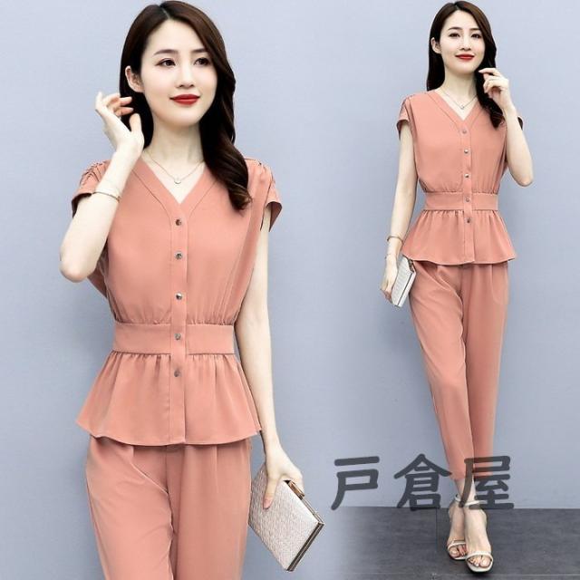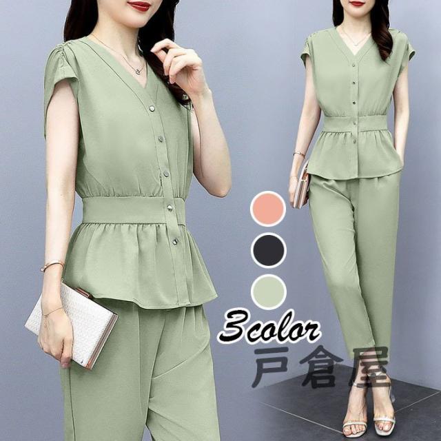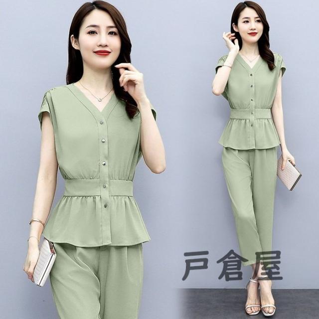 セットアップ レディース 40代 春夏新作 シフォン 半袖ブラウス ロング丈パンツ 上下セット 上品 韓国風セットアップ オシャレ通勤 OL カジュアル 30代 50代