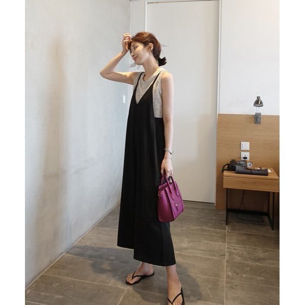 サロペット 20代 30代 40代 50代 コーデ オールインワン レディース ファッション 女性 夏服 秋 春 シフォンサロペットパンツ Vネック